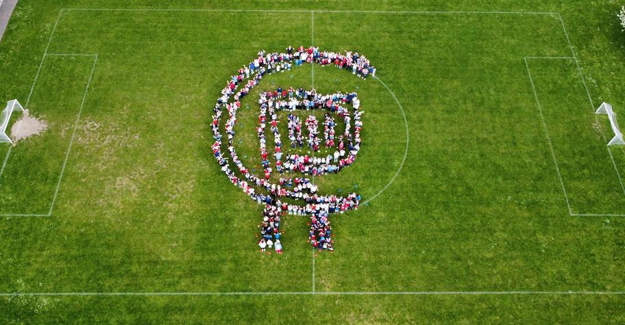 Straight after our delicious 'Coronation' themed lunch, provided by Mrs Perry and her team (before the heavy rain), Mr Simmonds and Mr Barrett organised the whole school into the formation of the royal emblem for a drone photo. Long Live the King!