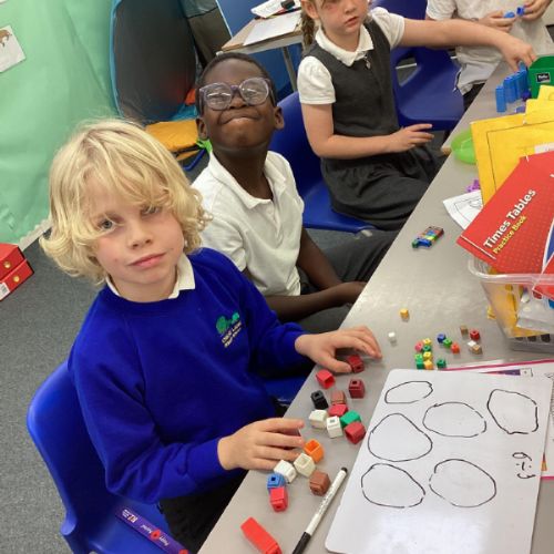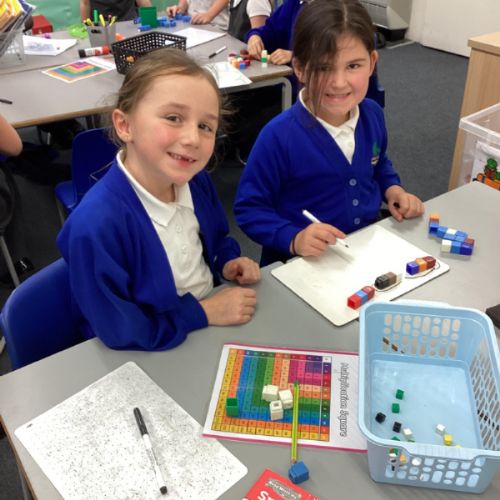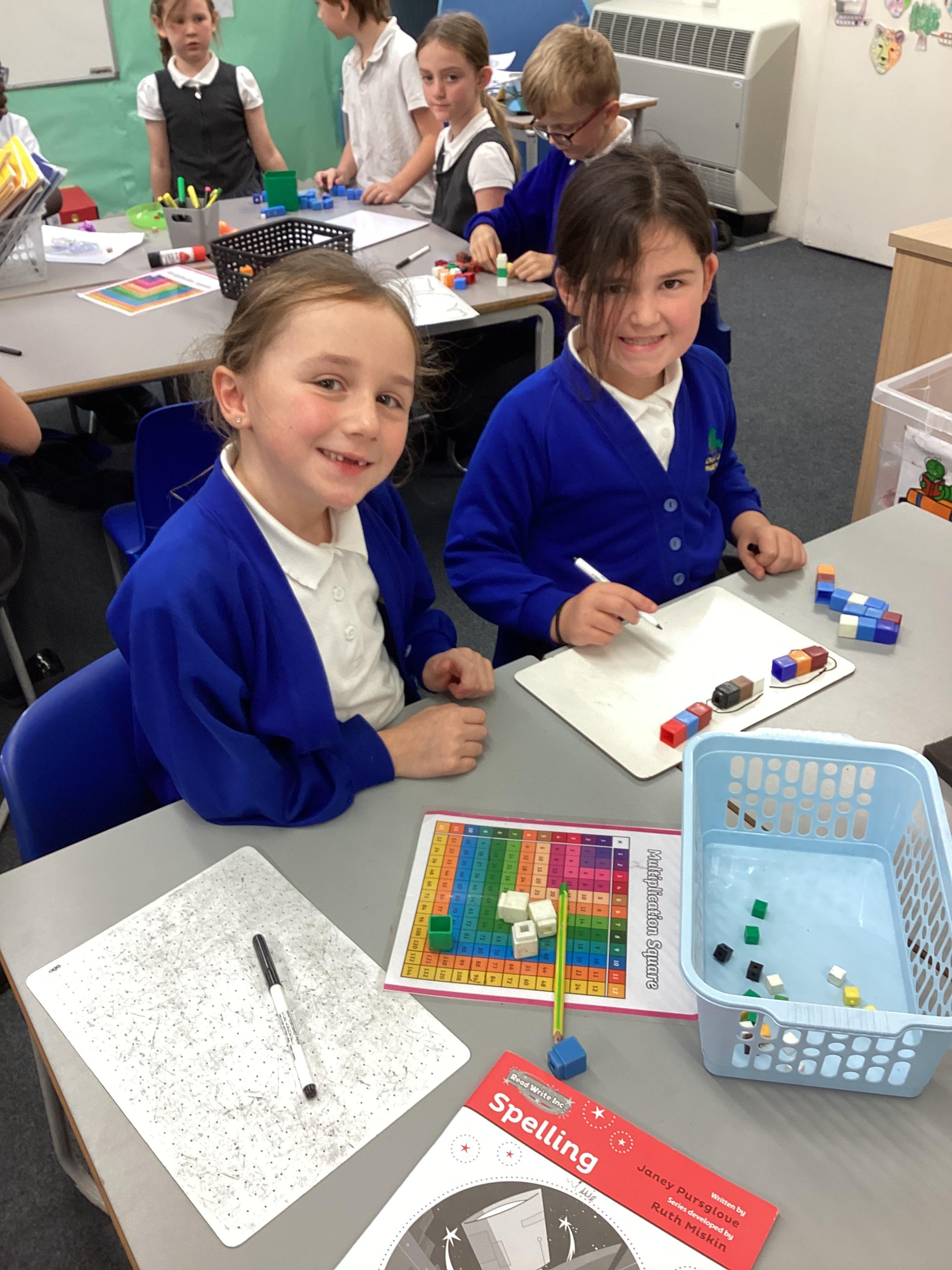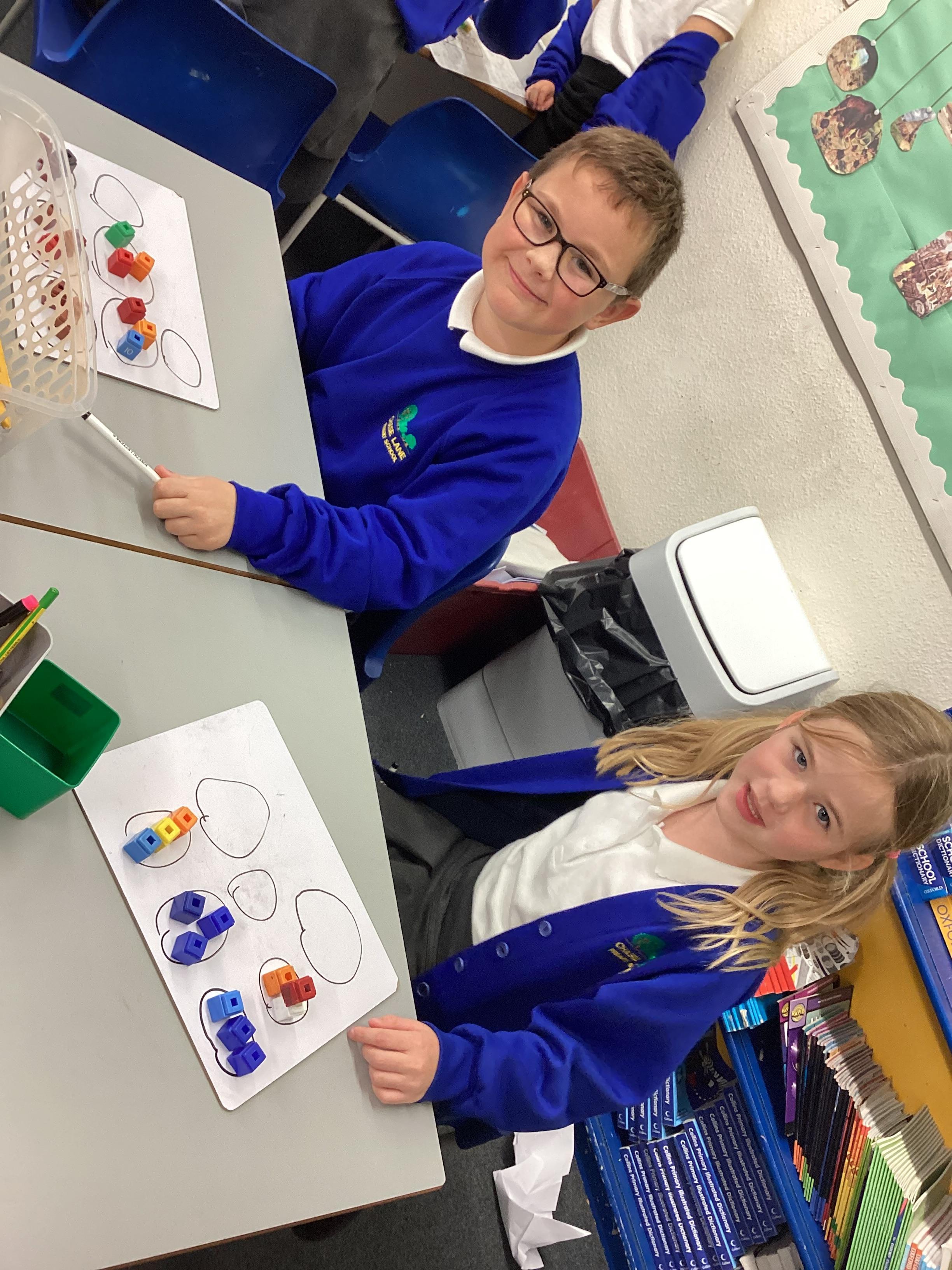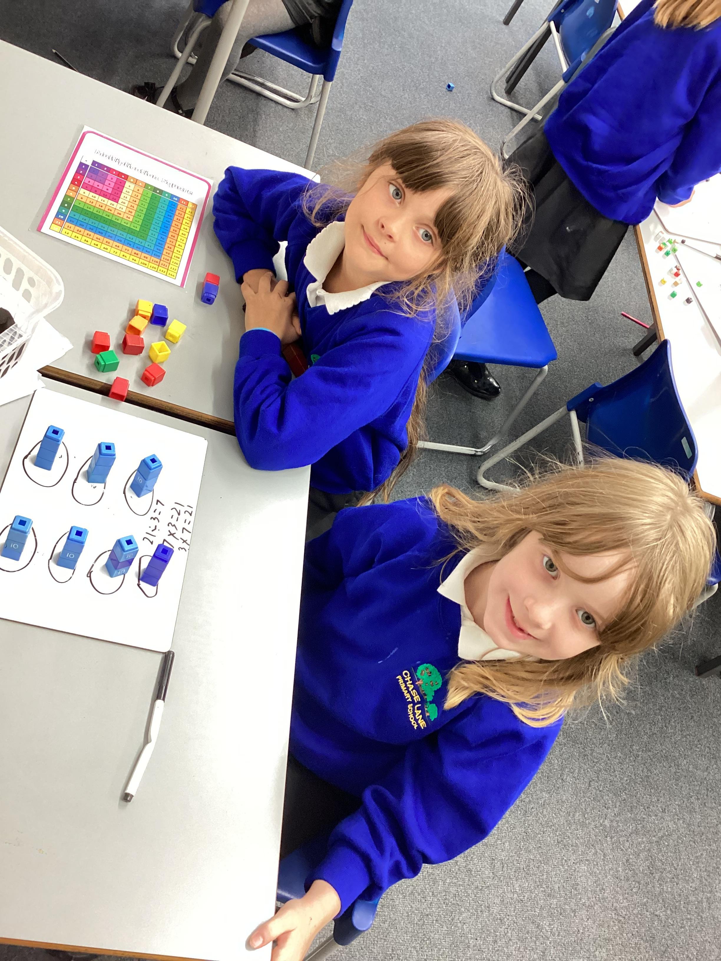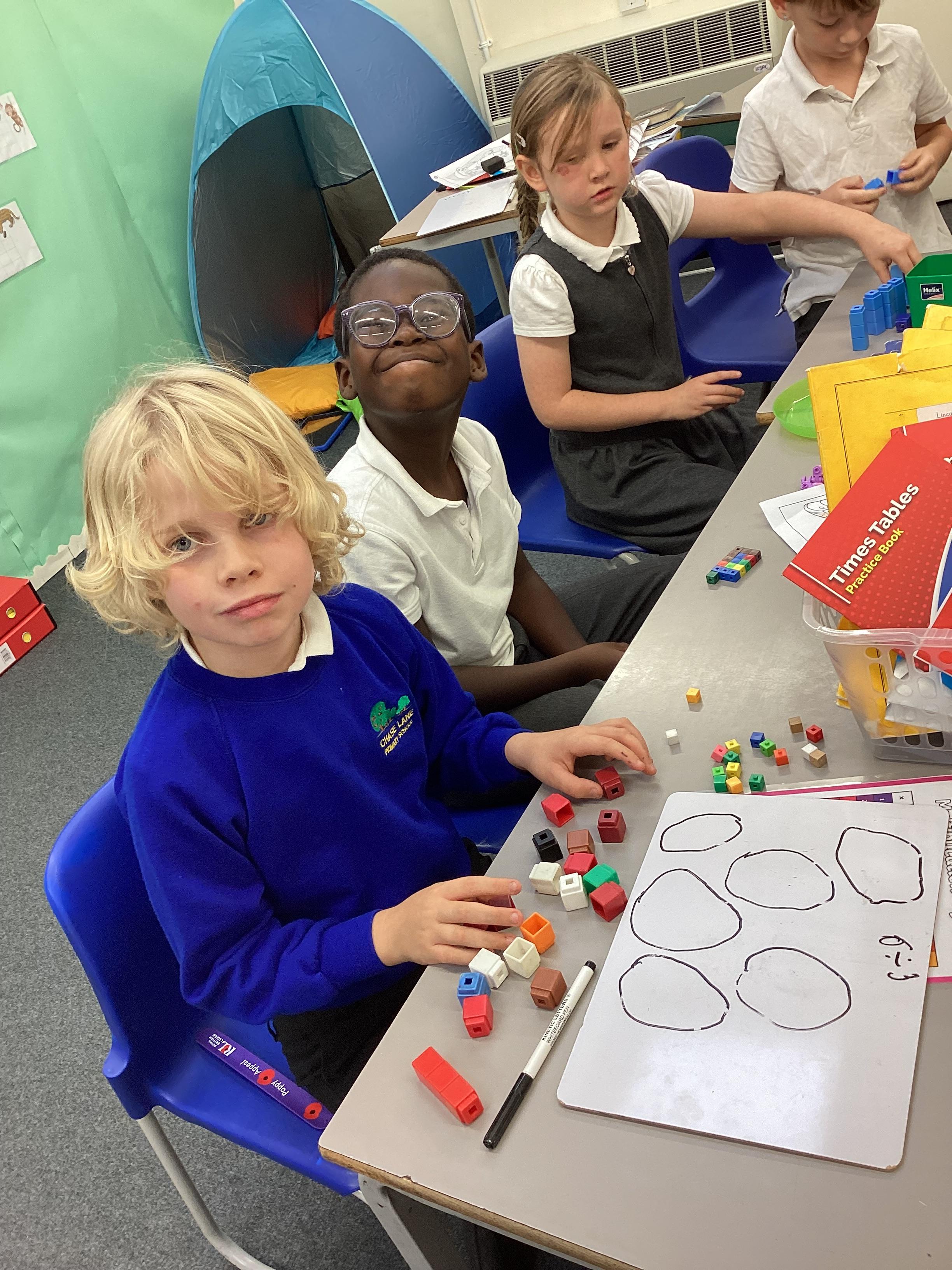 In maths we have been focusing on division and multiplication. Working with our partners, using cubes and wipe boards we created equal groups to help us work out various division questions! Below are some photos of our partner work.