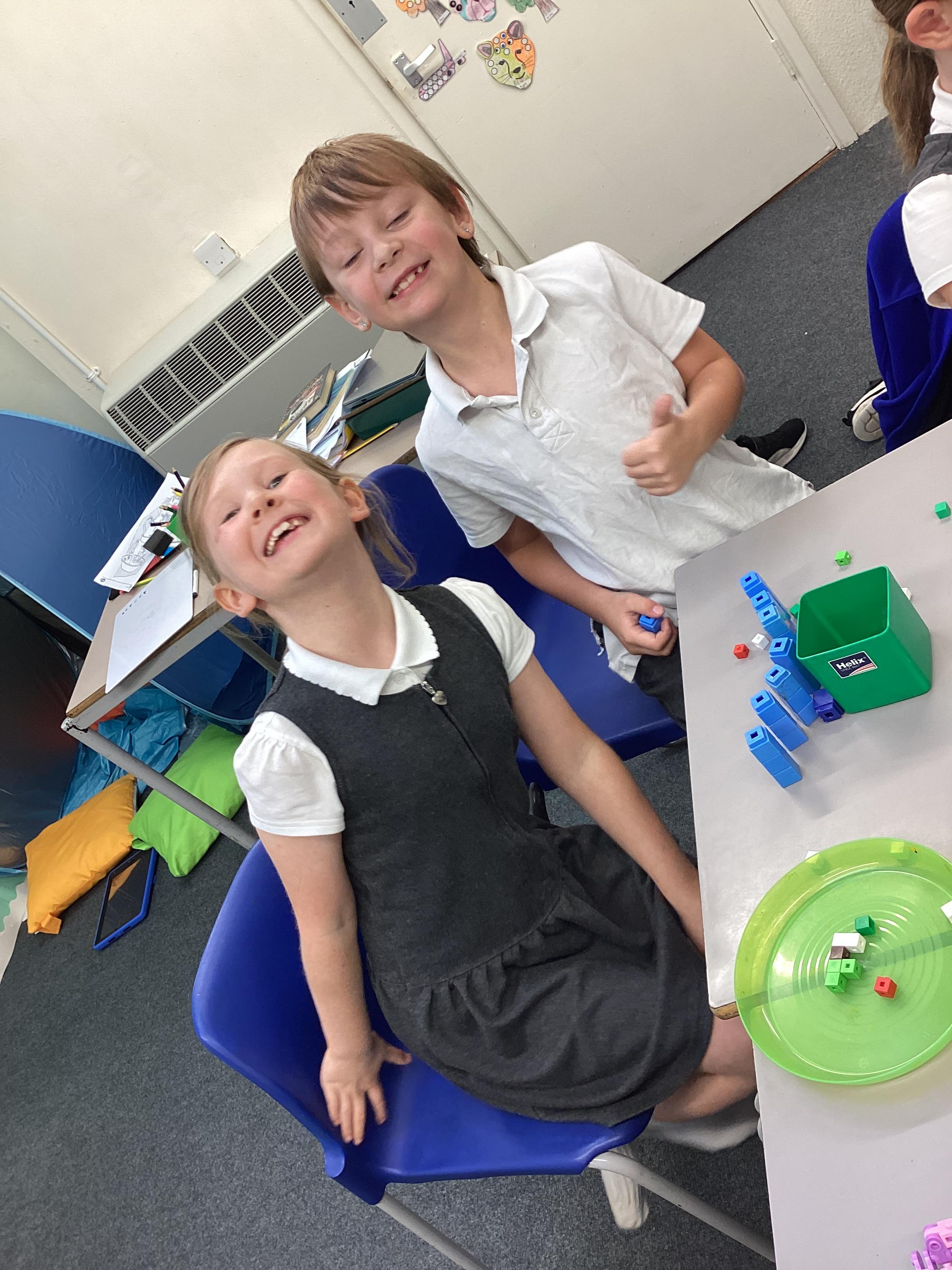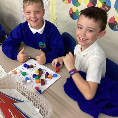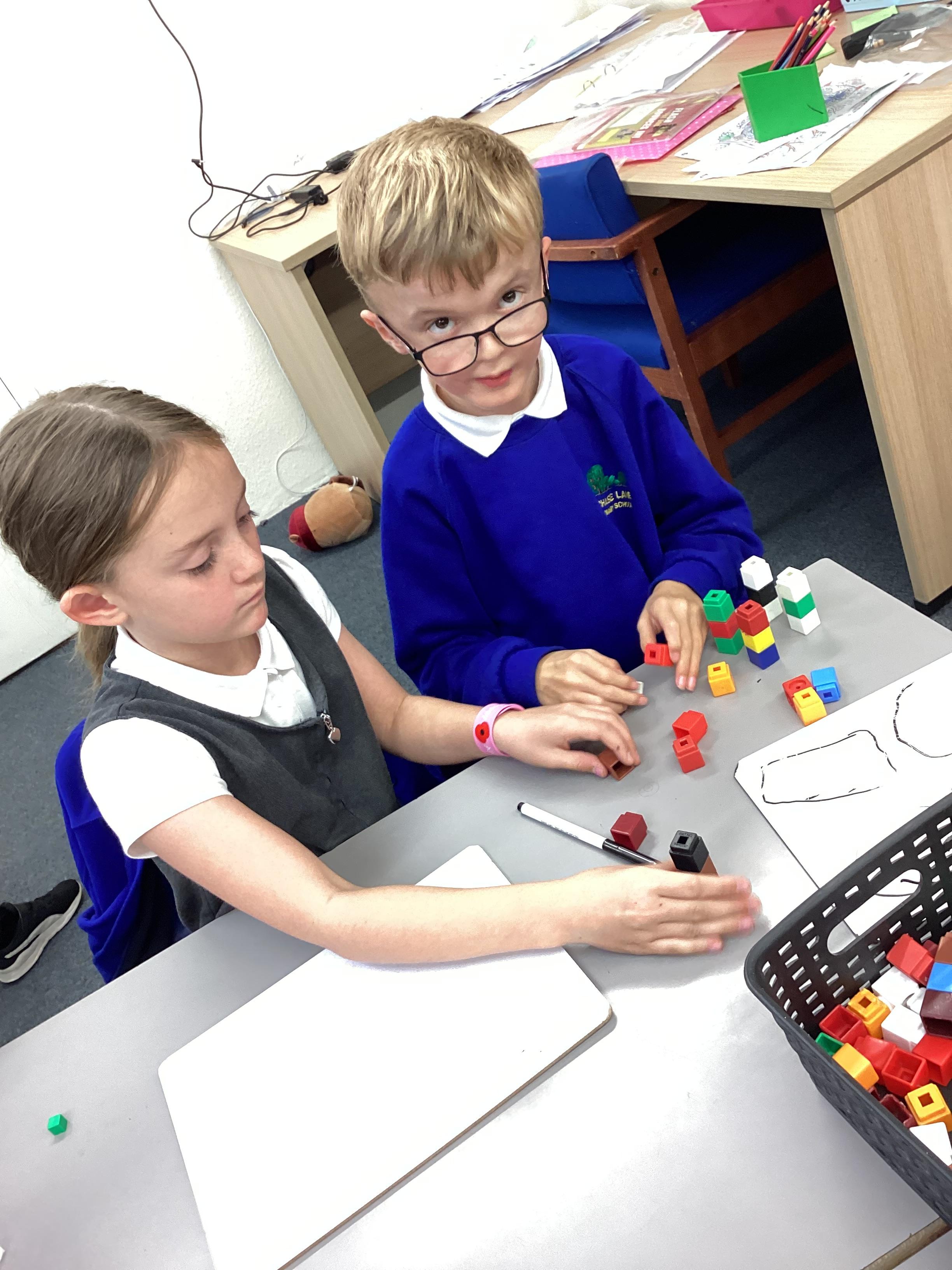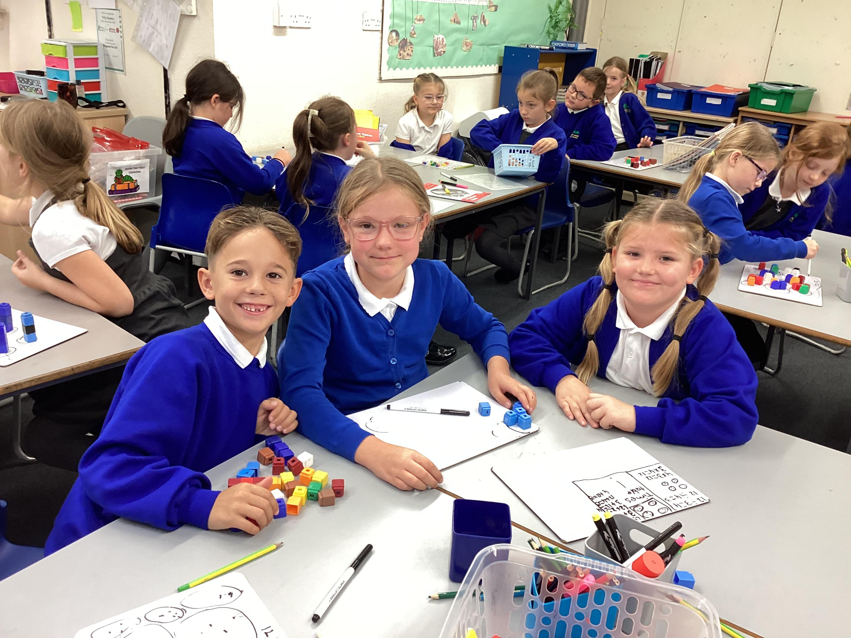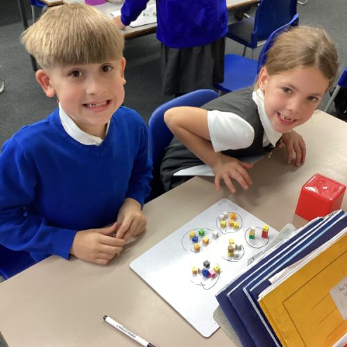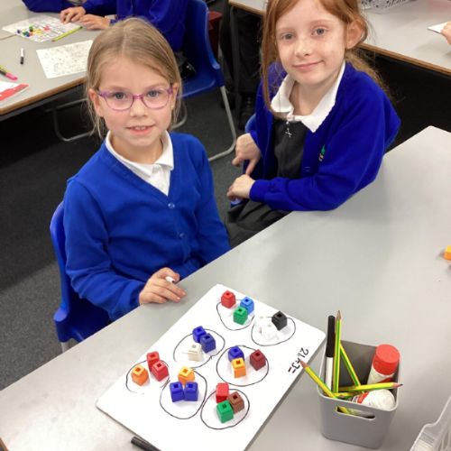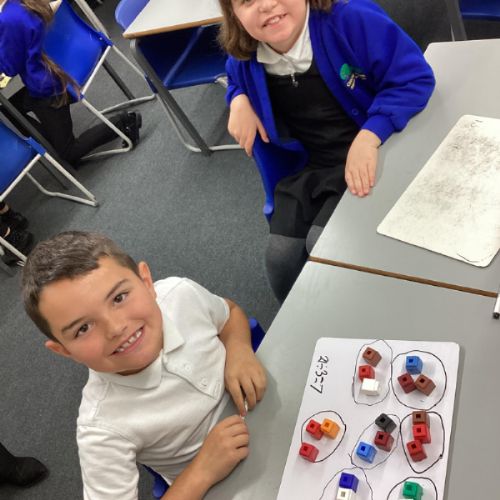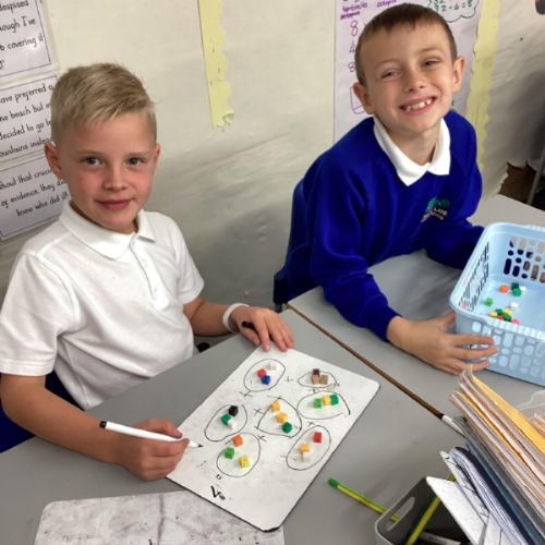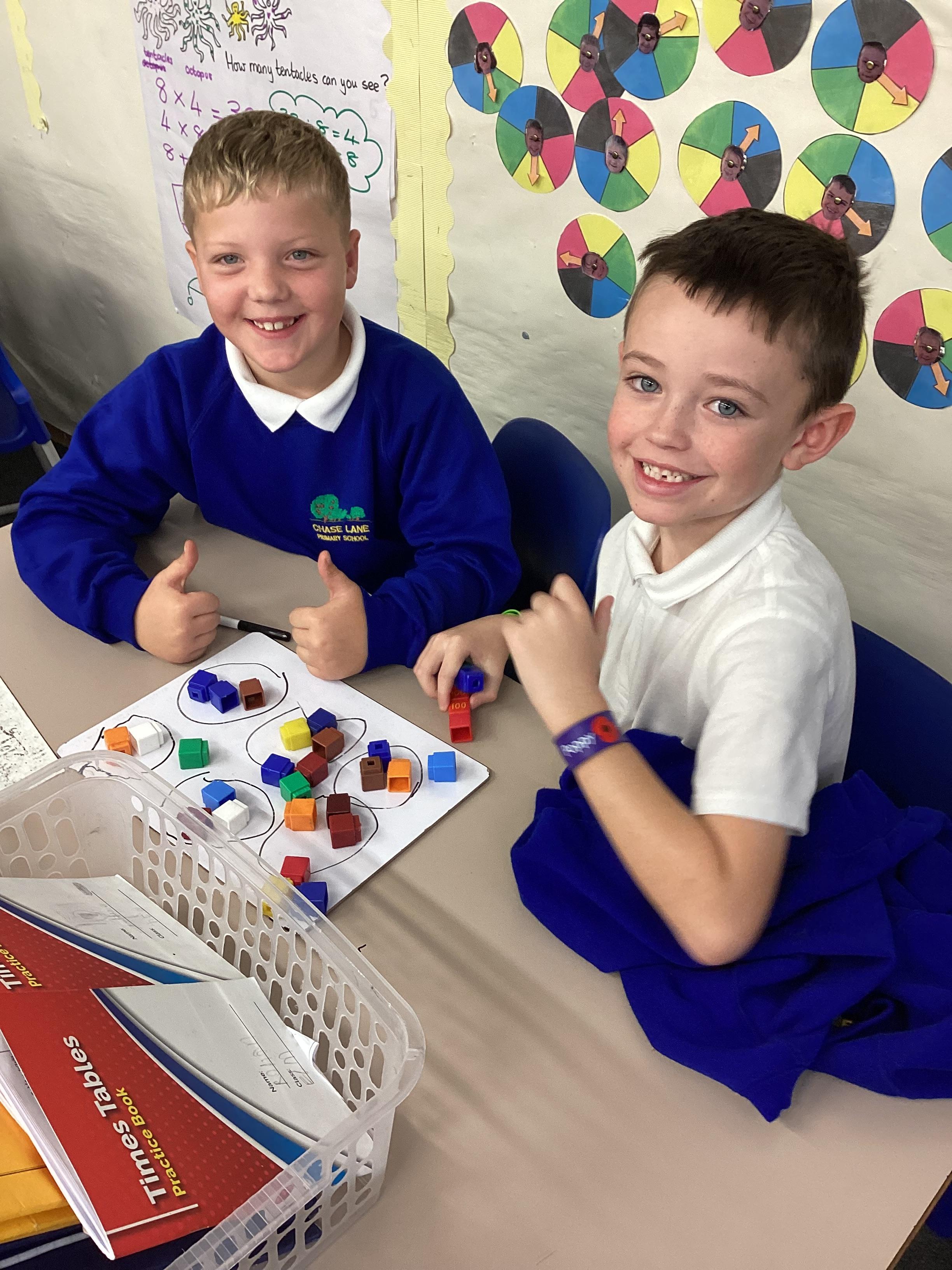 In maths we have been focusing on division and multiplication. Working with our partners, using cubes and wipe boards we created equal groups to help us work out various division questions! Below are some photos of our partner work.