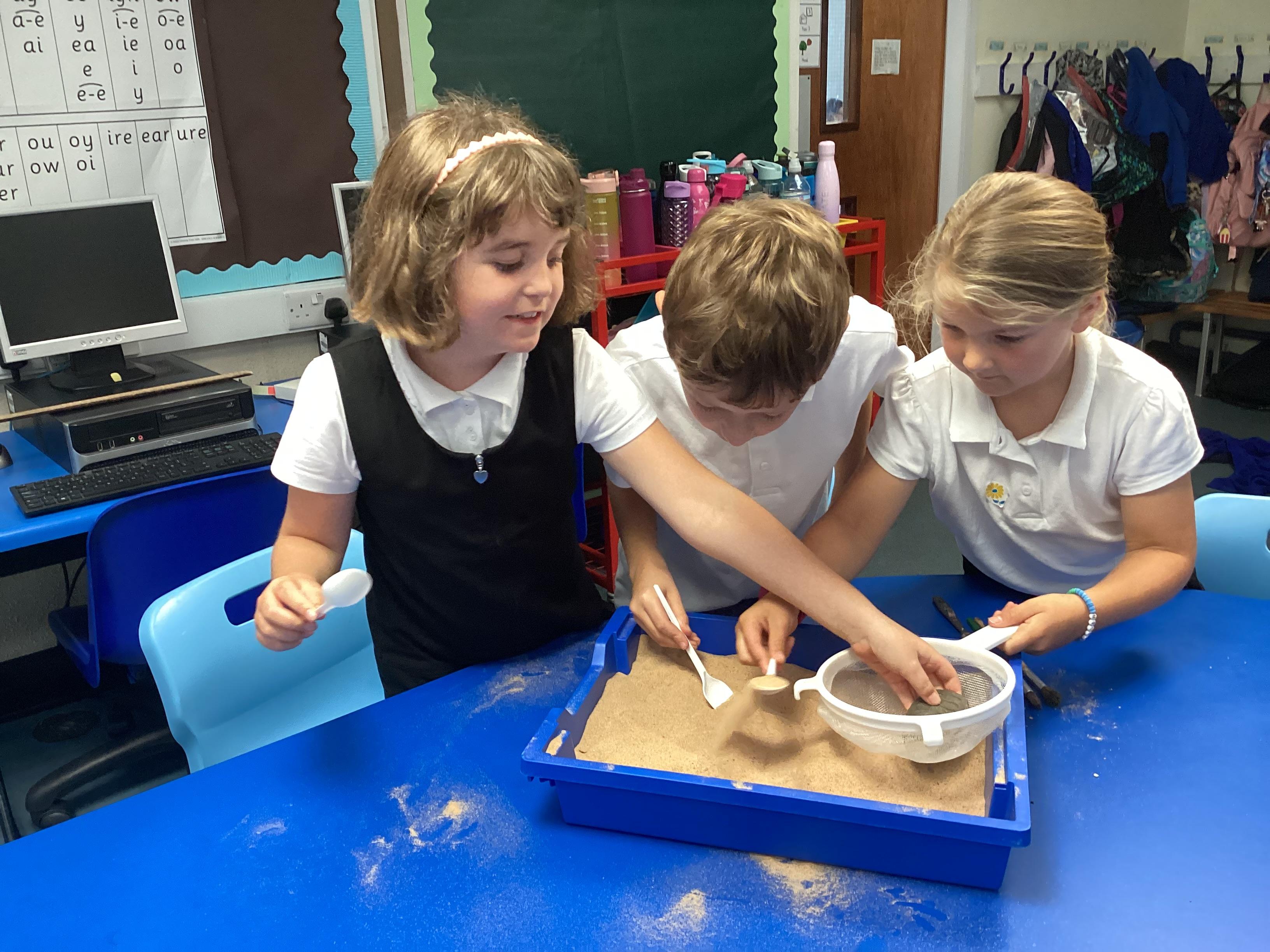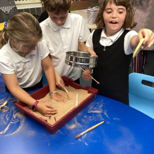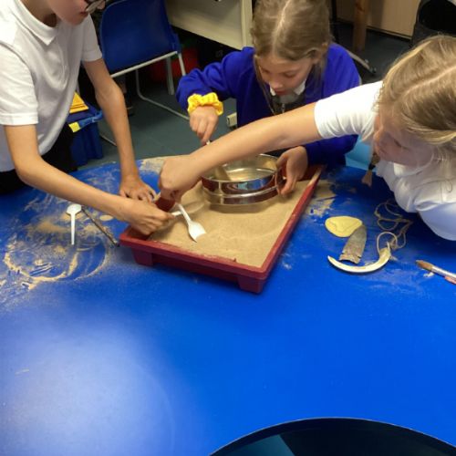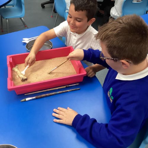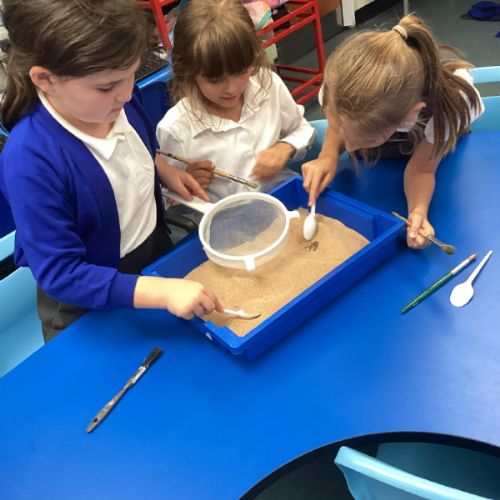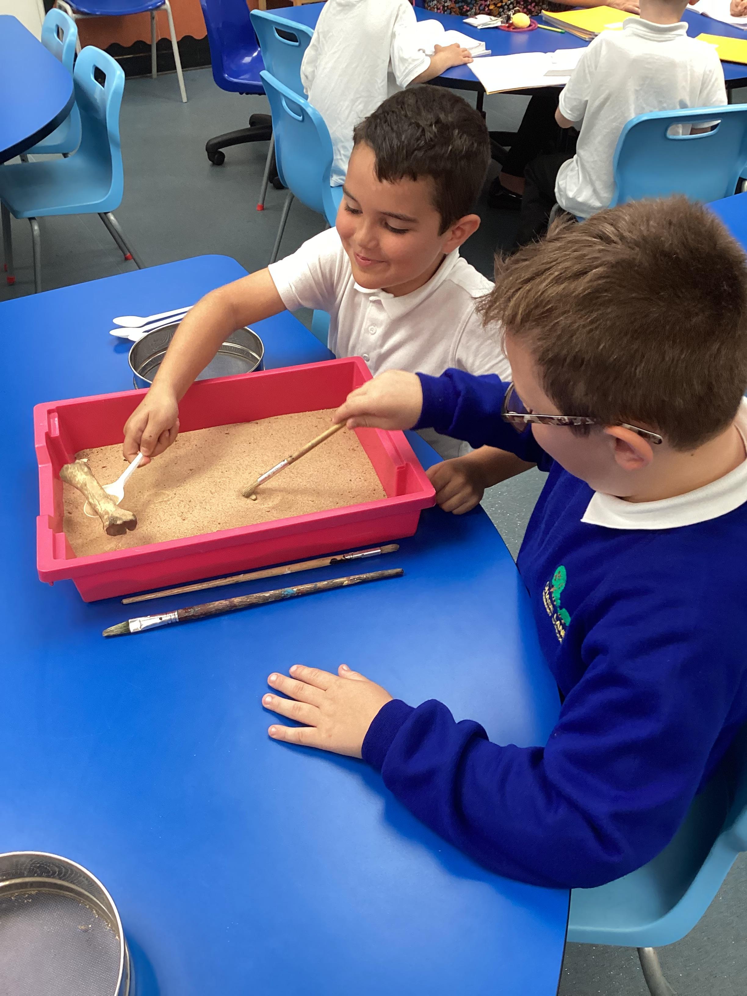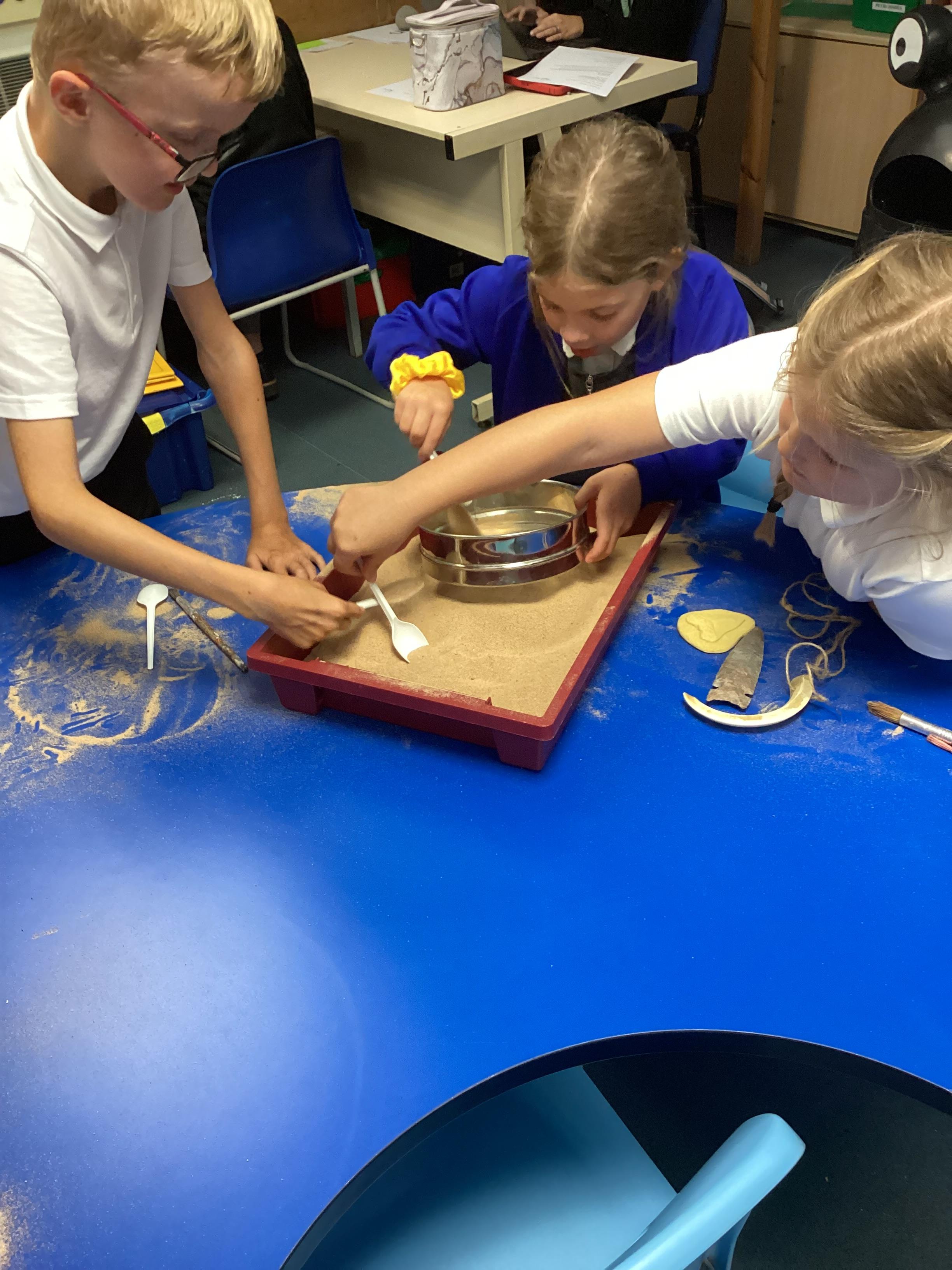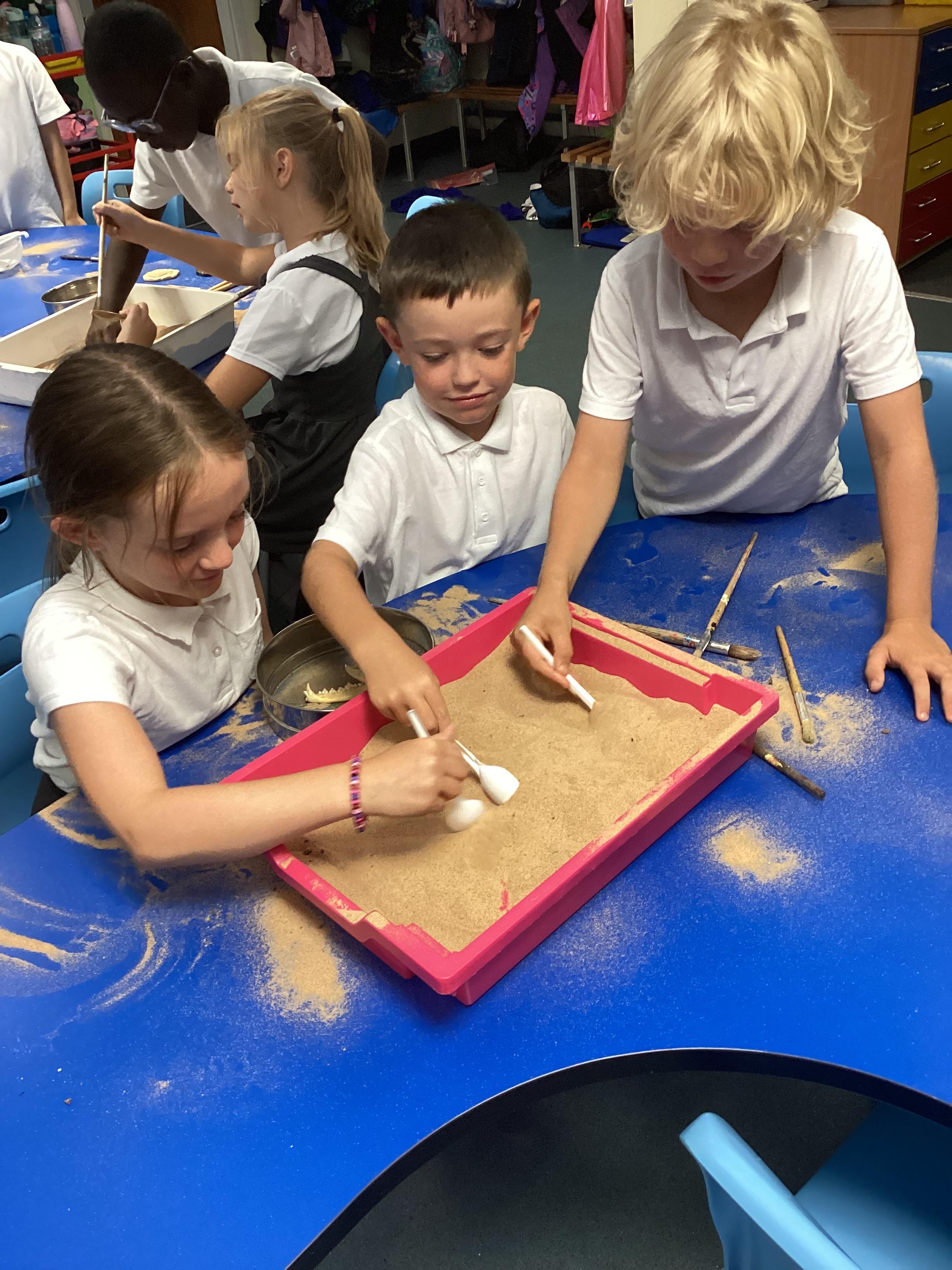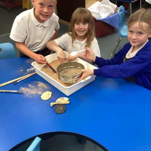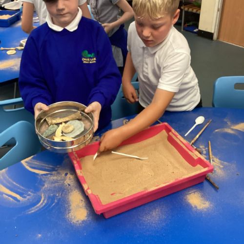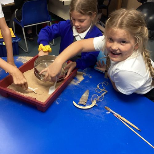 Over the next few weeks, we will be immersing ourselves into life during the Stone Age, discovering lots about how they hunted, what they ate and what their homes and daily activities were like. We have learnt about how archaeologists discover fossils and artefacts from the past. Below are some photos from when we carried out our very own Stone Age dig!