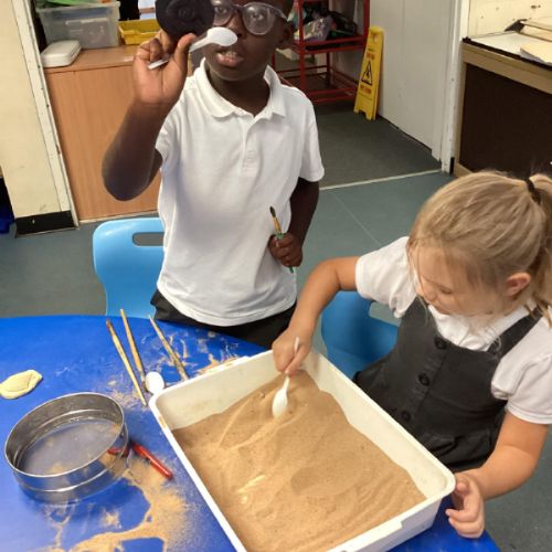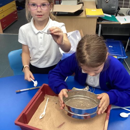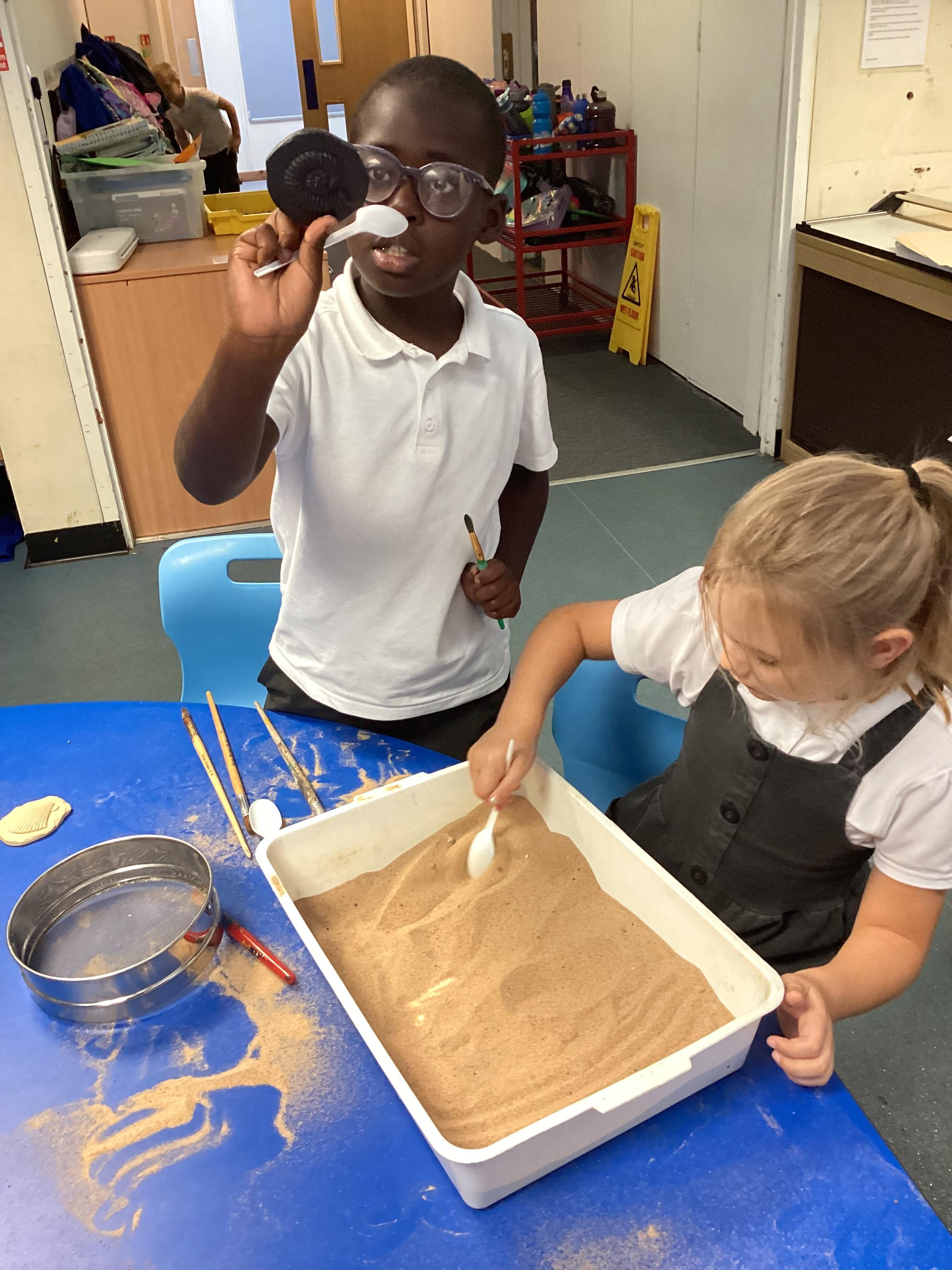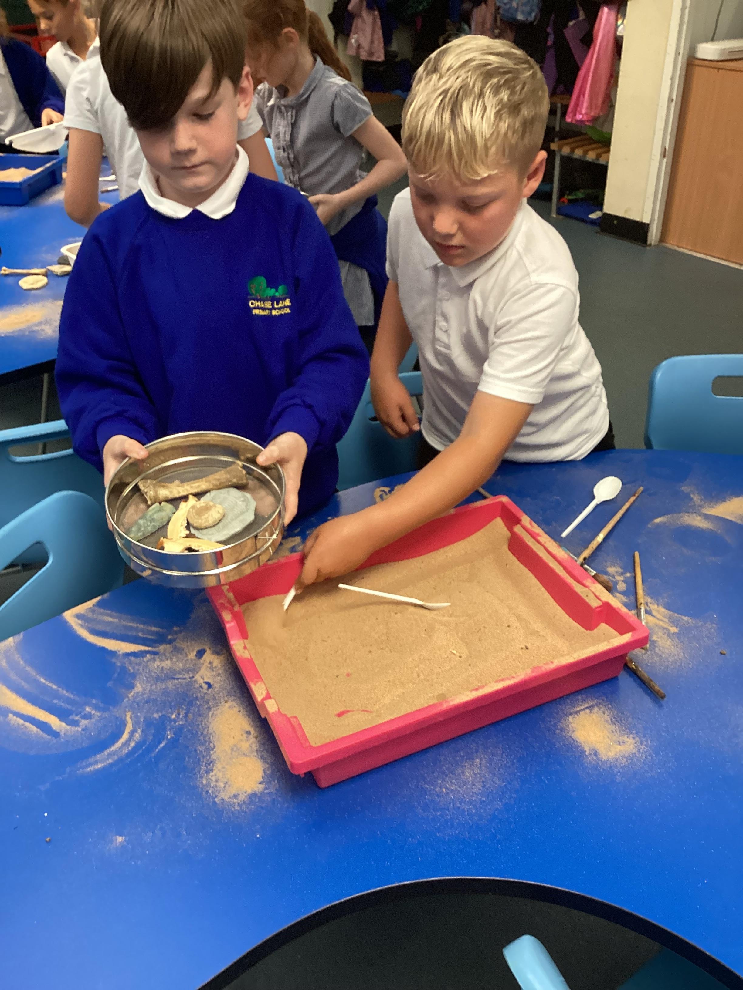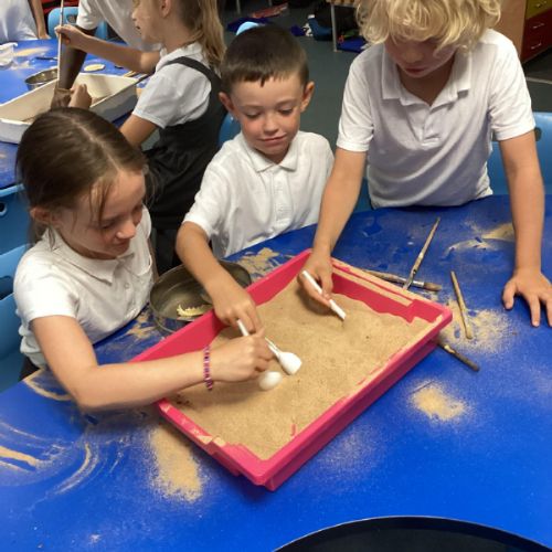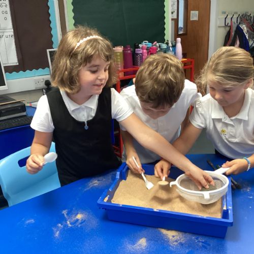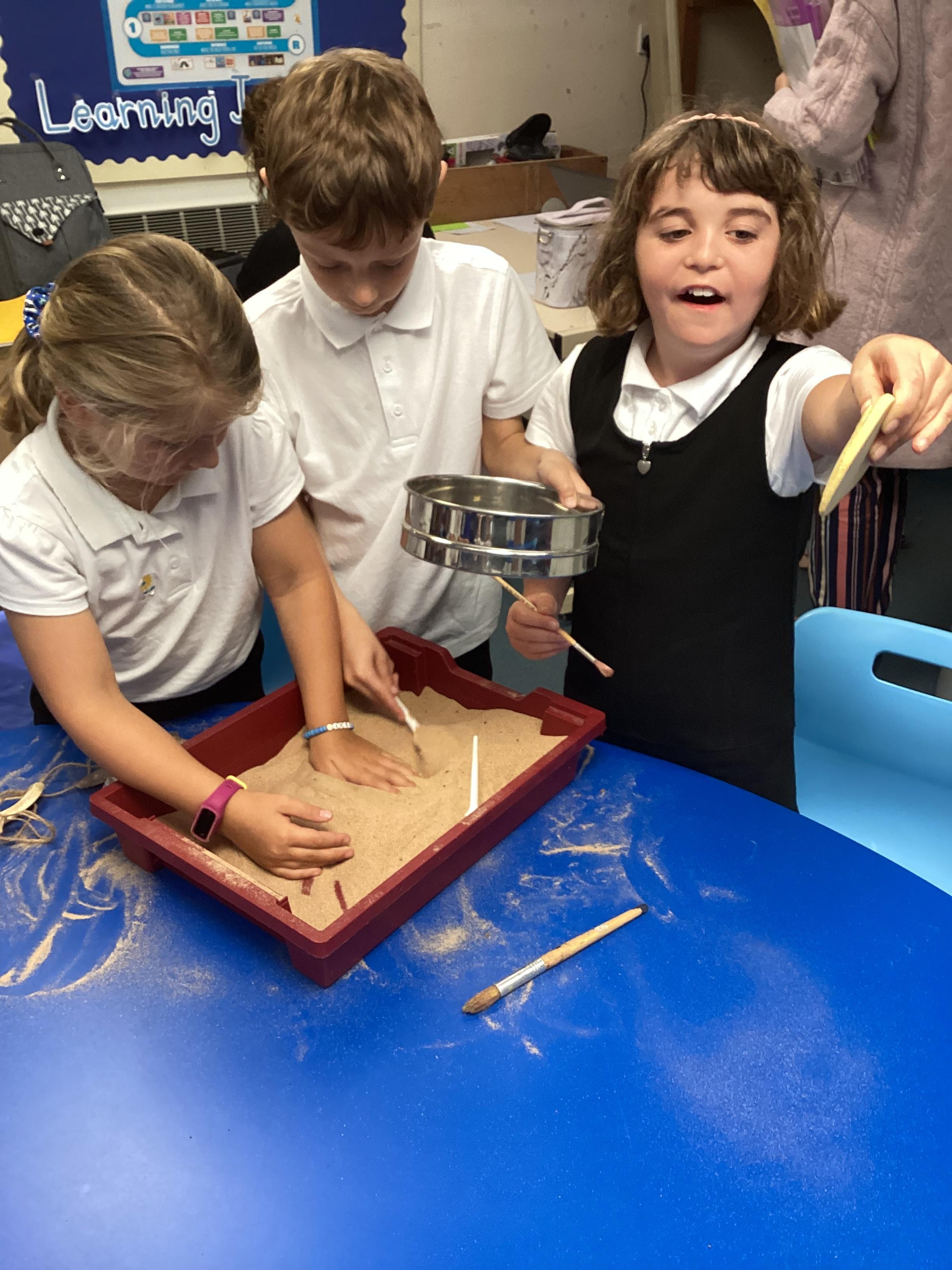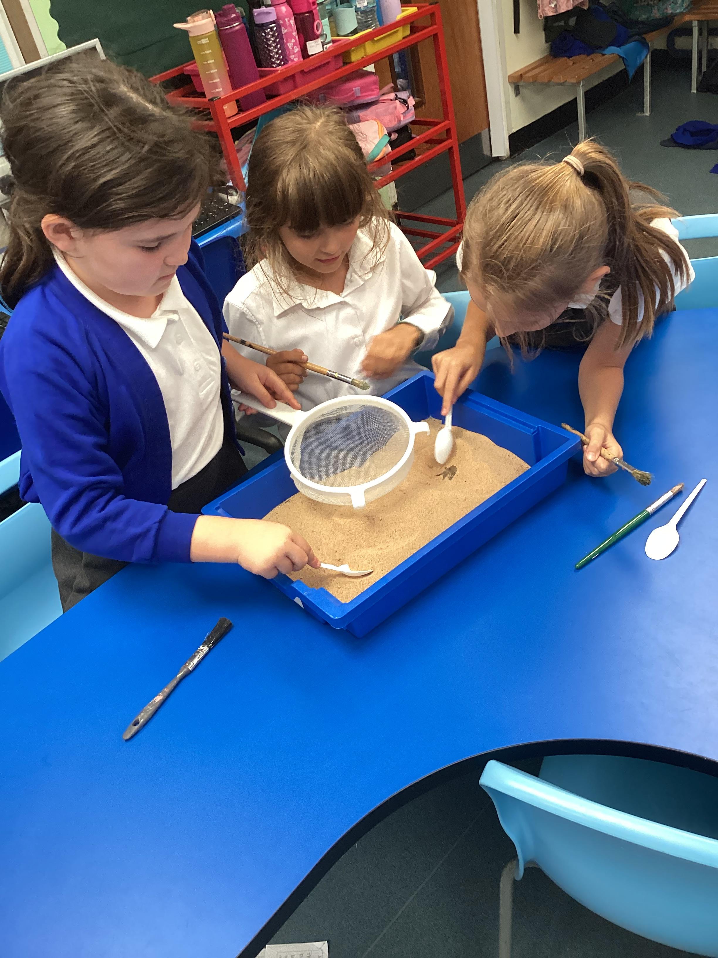 Over the next few weeks, we will be immersing ourselves into life during the Stone Age, discovering lots about how they hunted, what they ate and what their homes and daily activities were like. We have learnt about how archaeologists discover fossils and artefacts from the past. Below are some photos from when we carried out our very own Stone Age dig!