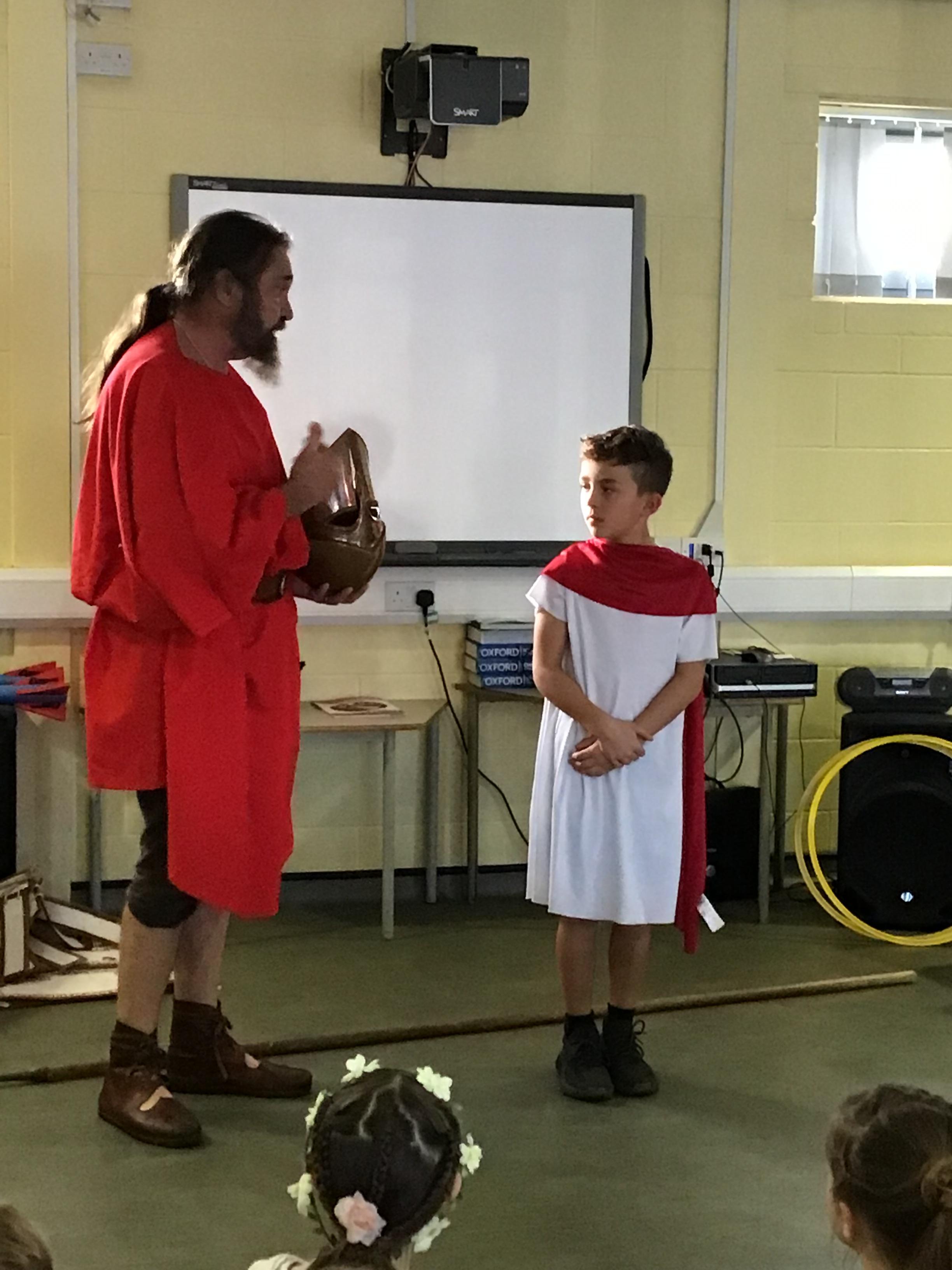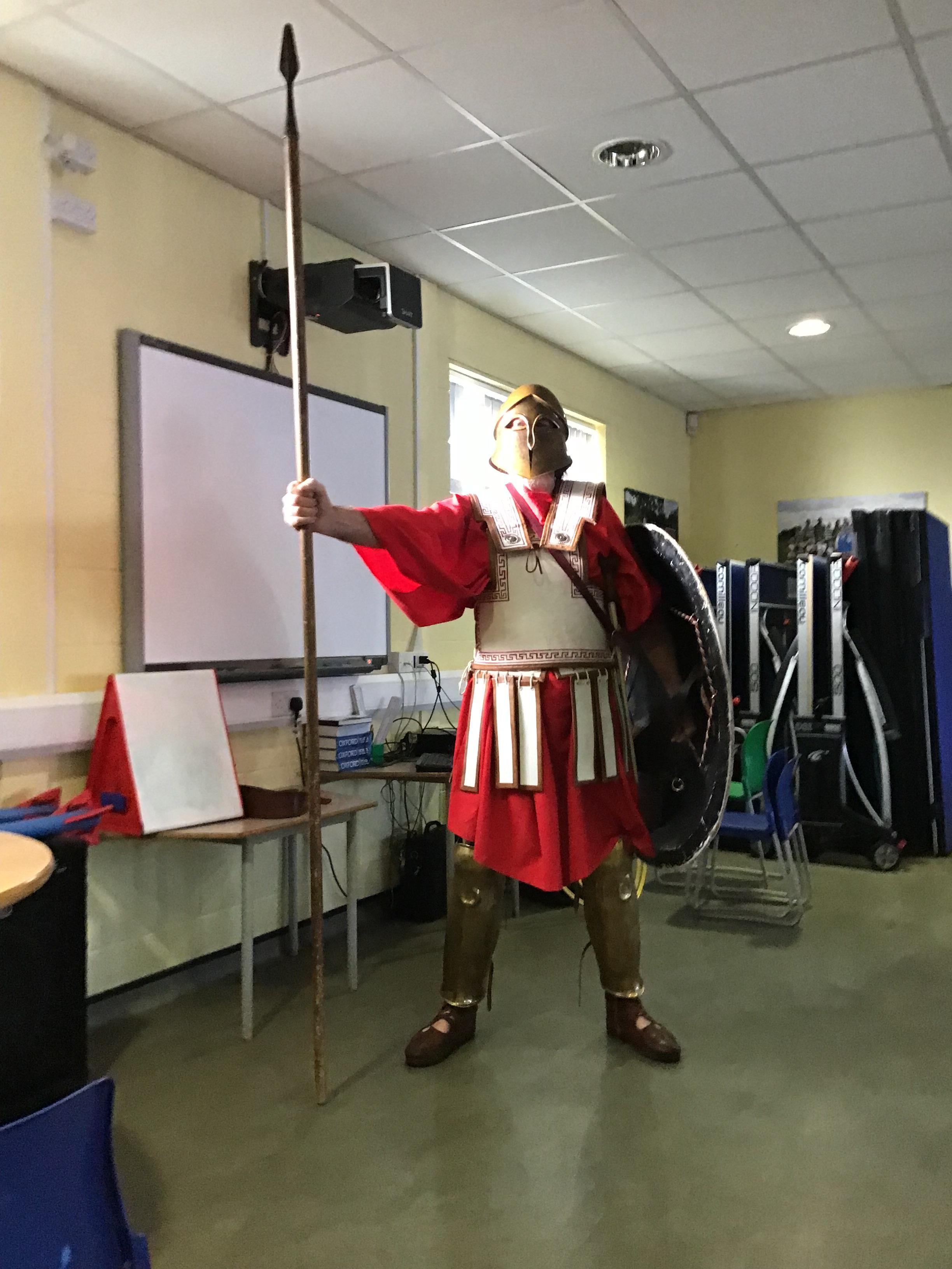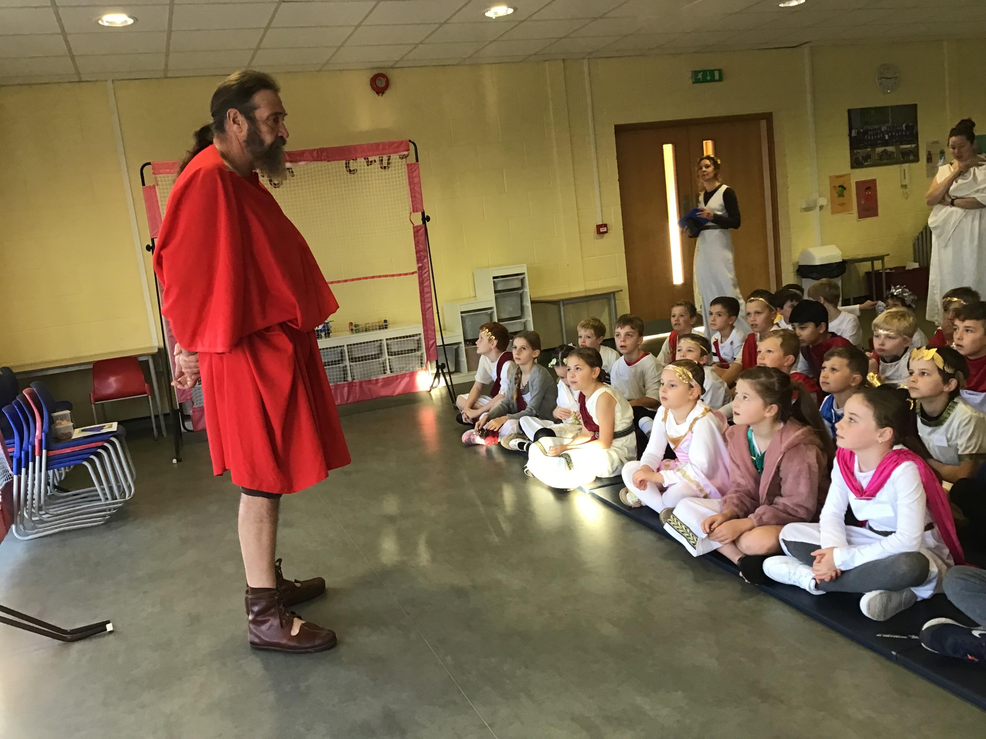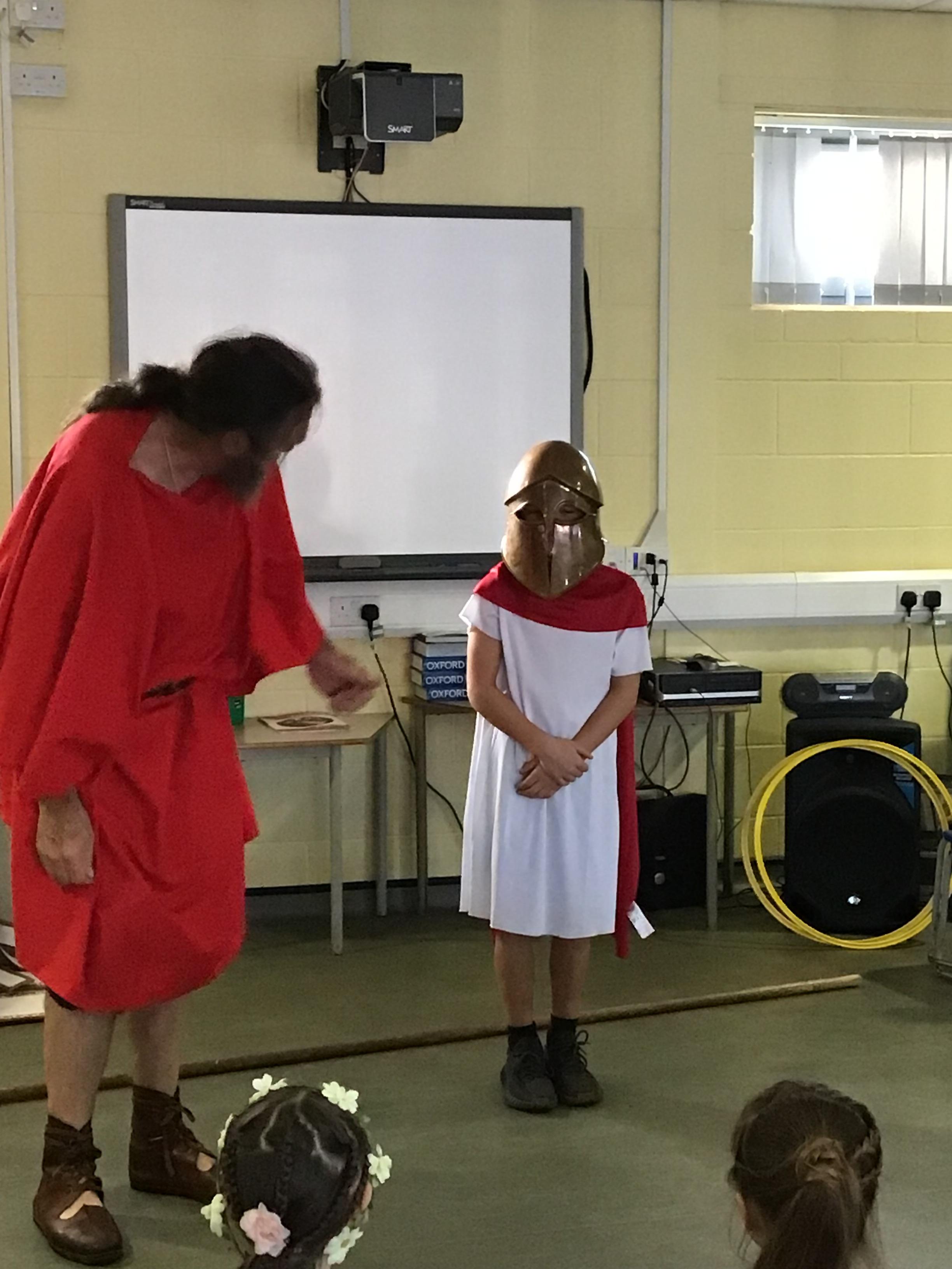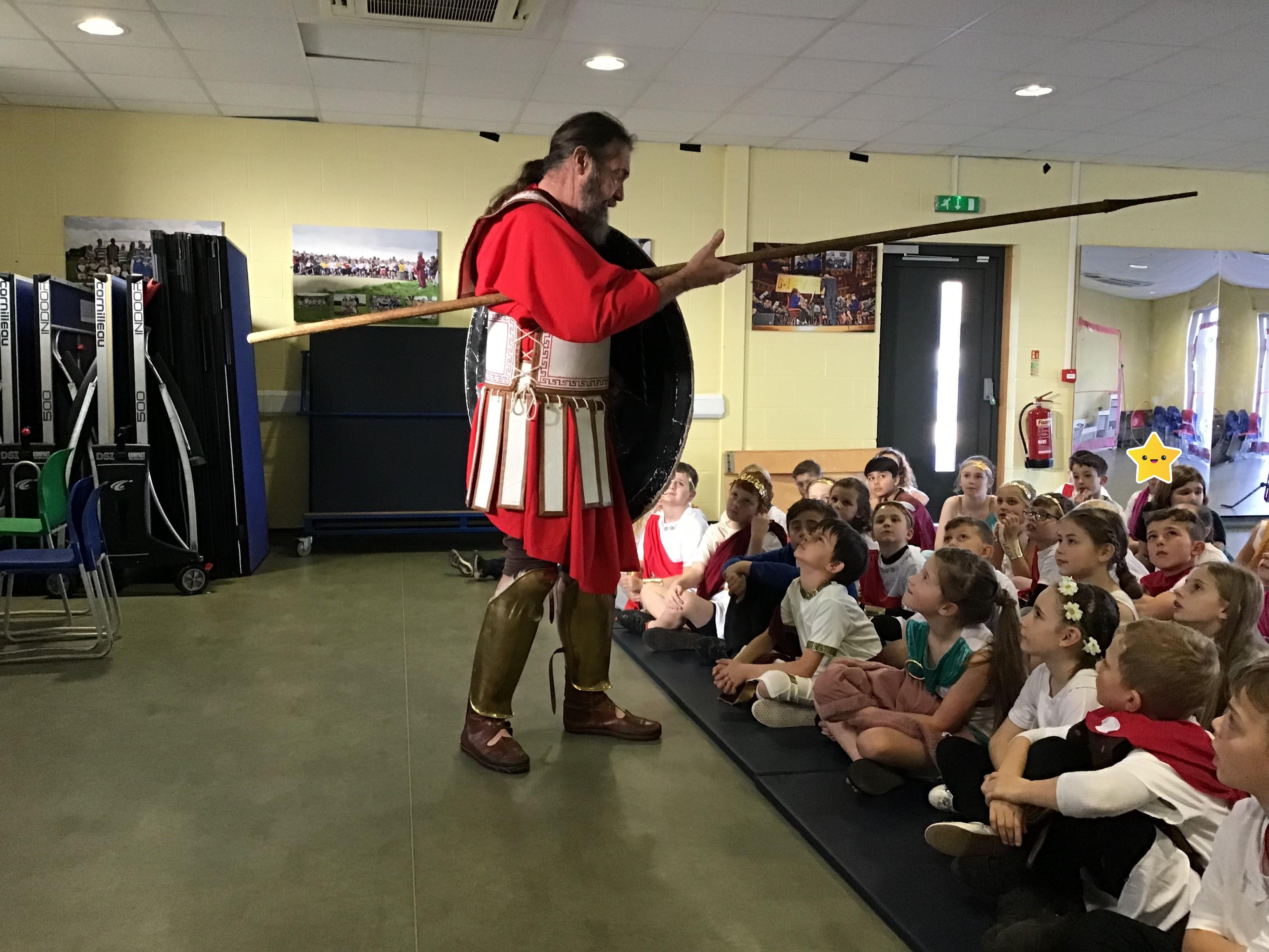 Recently, Year 4 celebrated the end of their Ancient Greek topic by dressing up and meeting a Greek warrior who told stories about Ancient Greek times.