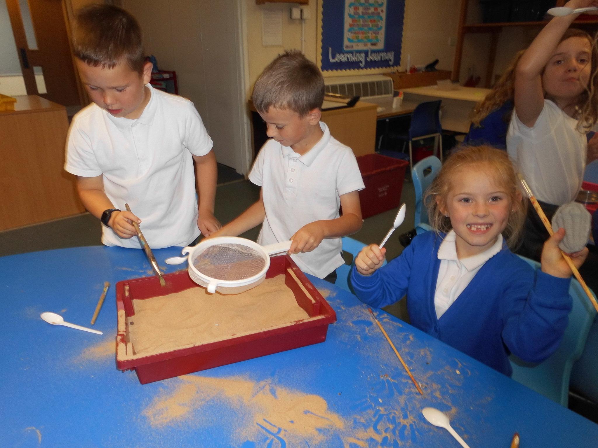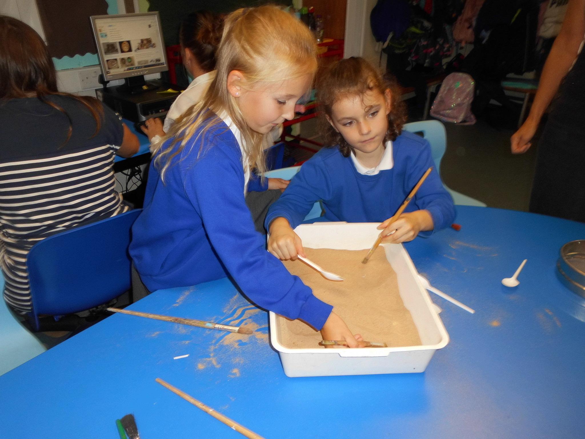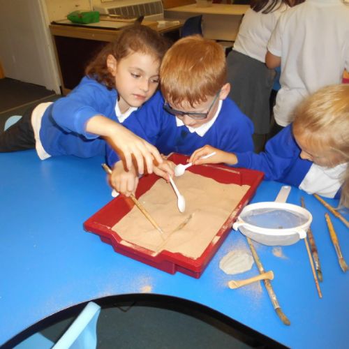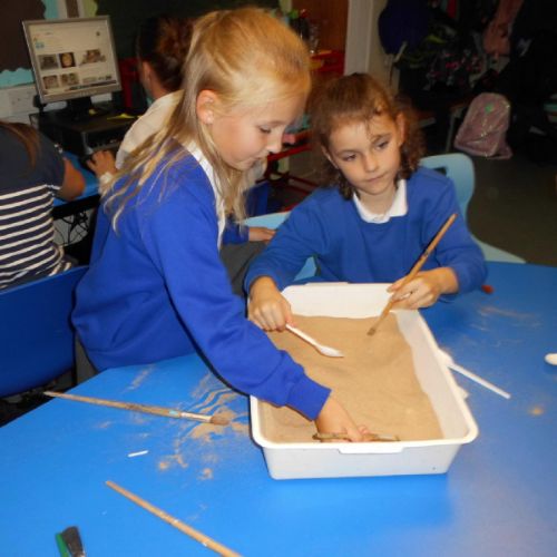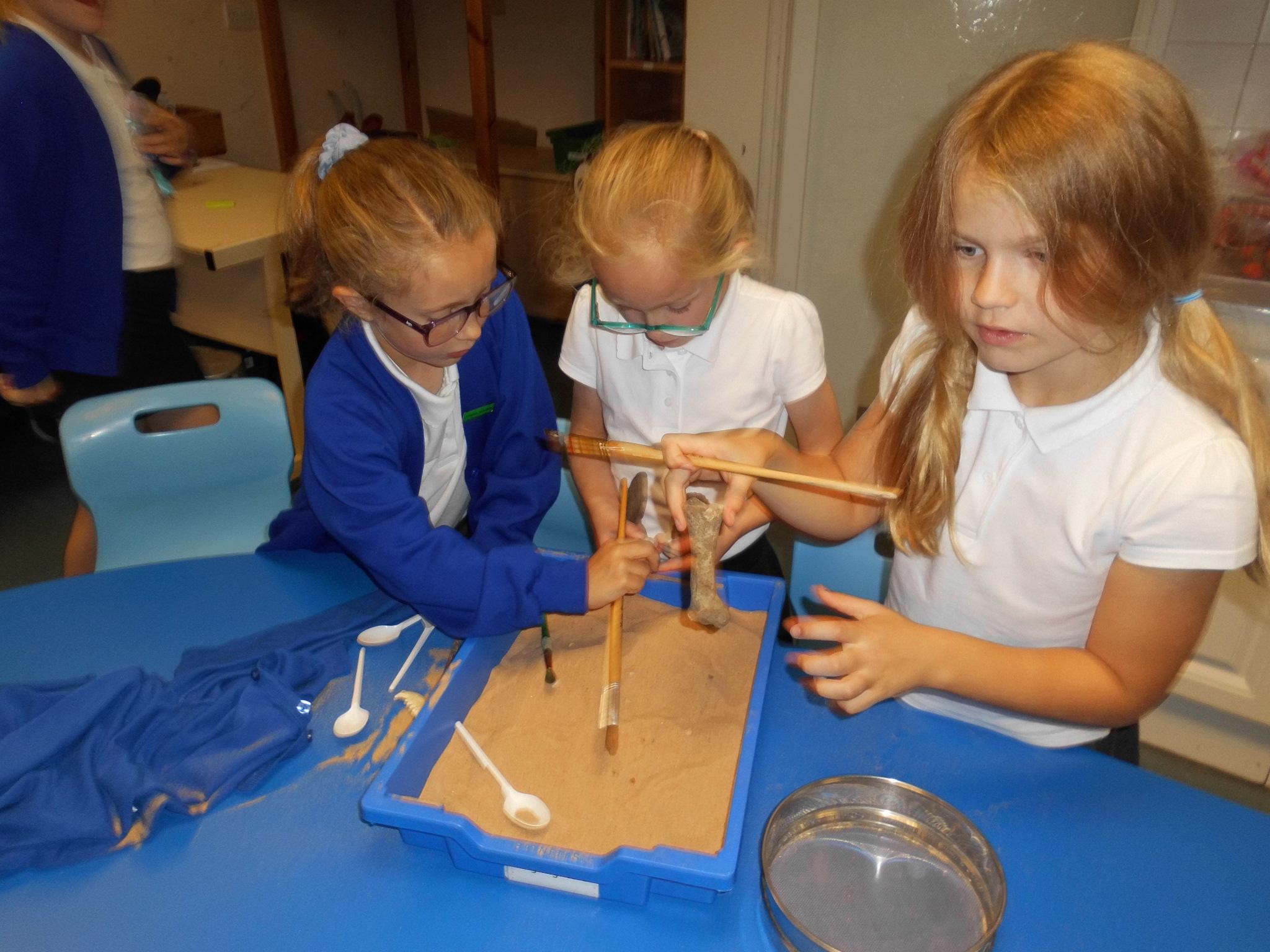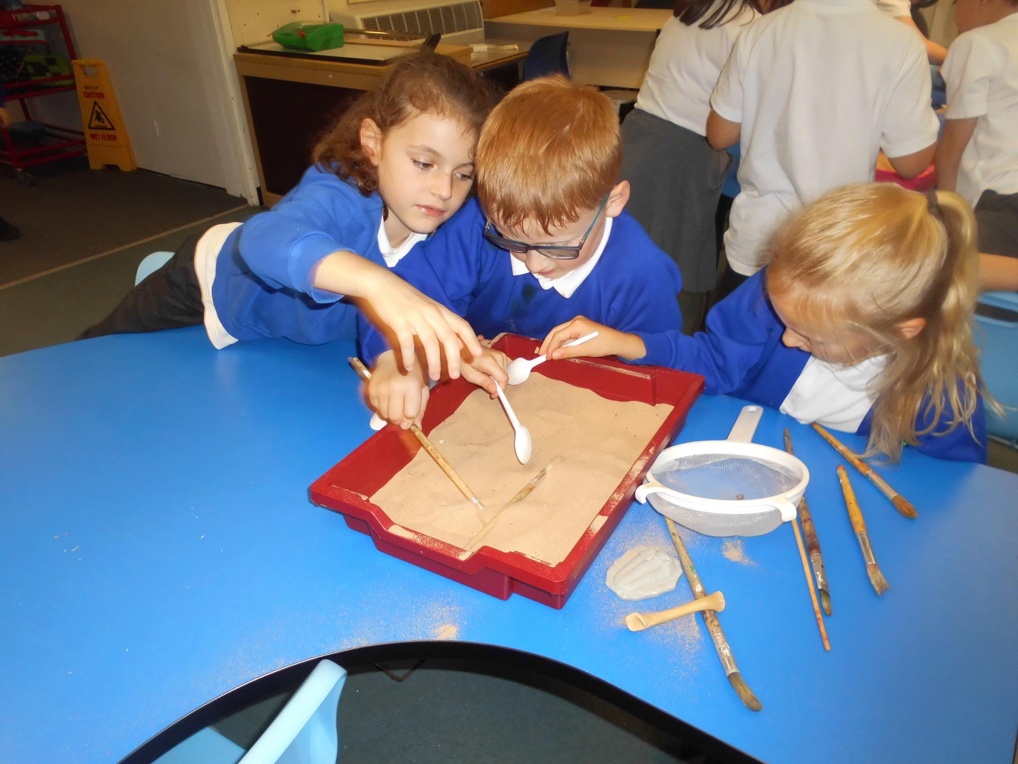 Whilst studying the Stone Age, we have learnt about how archaeologists found out about the past. We have tried to recreate some of these methods including becoming archaeologists by excavating in the sand. Here we are being archaeologists!