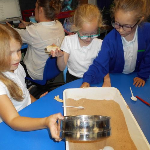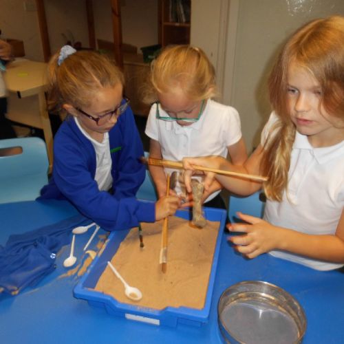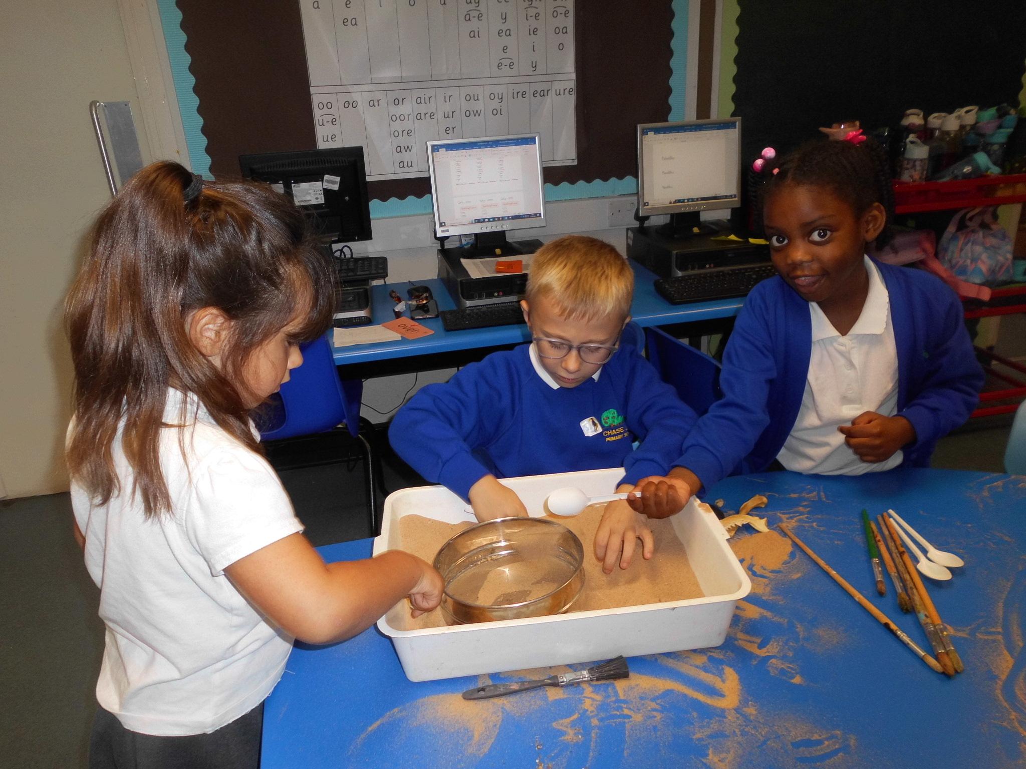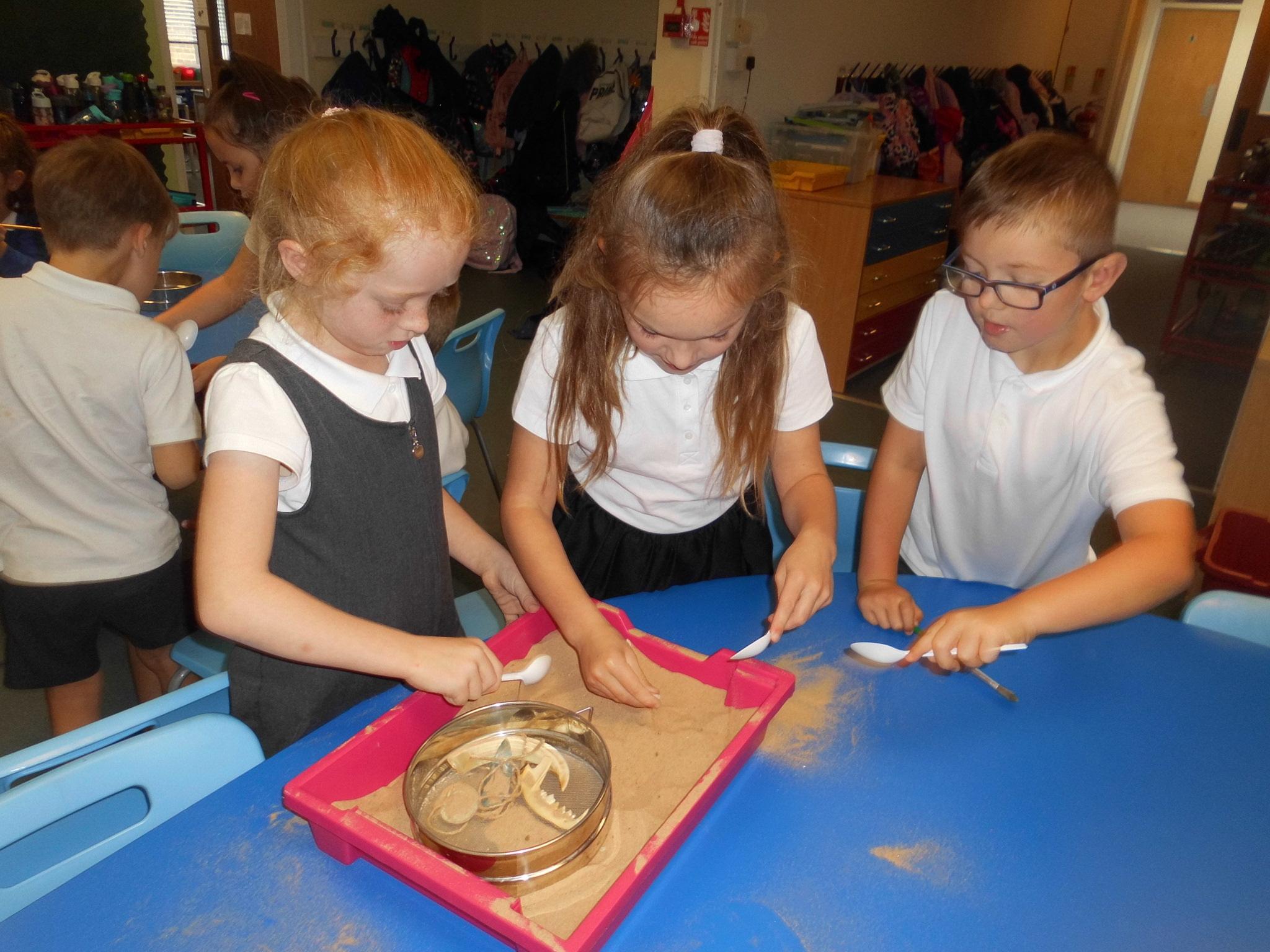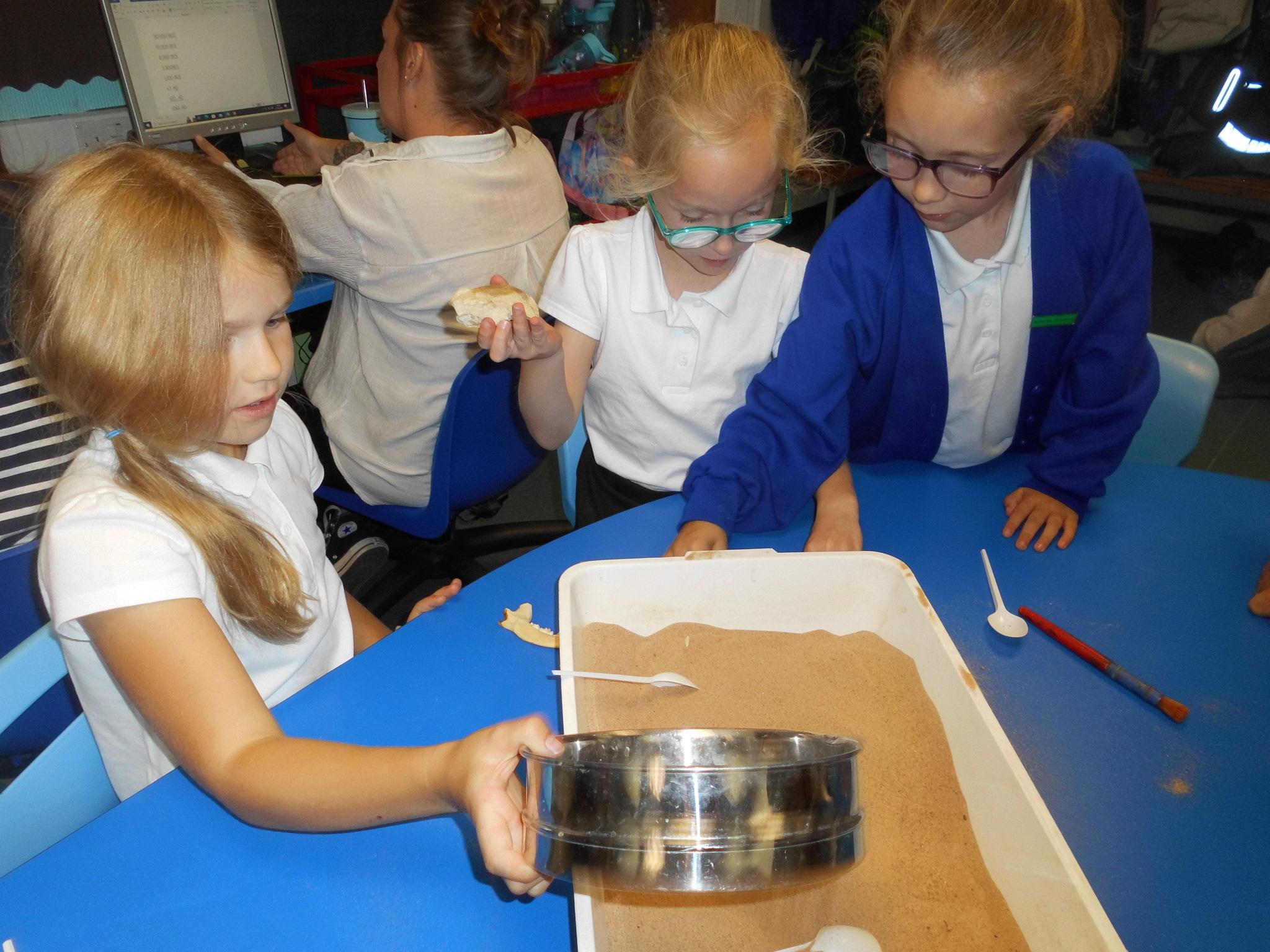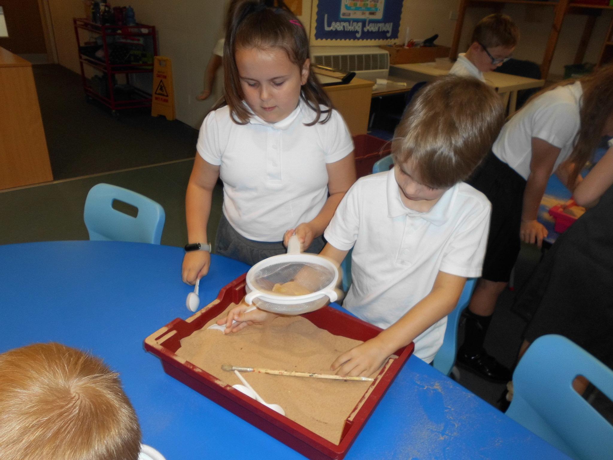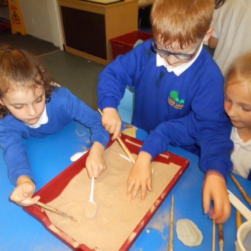 Whilst studying the Stone Age, we have learnt about how archaeologists found out about the past. We have tried to recreate some of these methods including becoming archaeologists by excavating in the sand. Here we are being archaeologists!