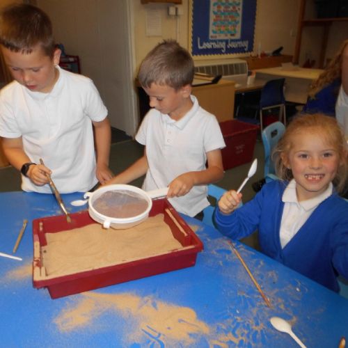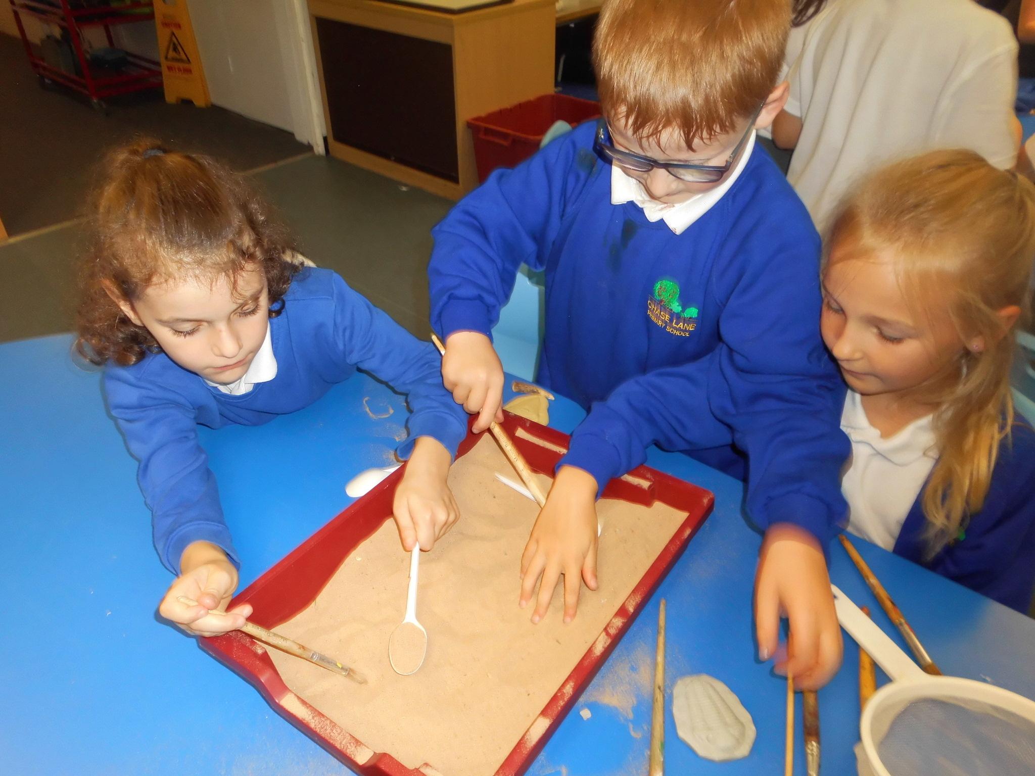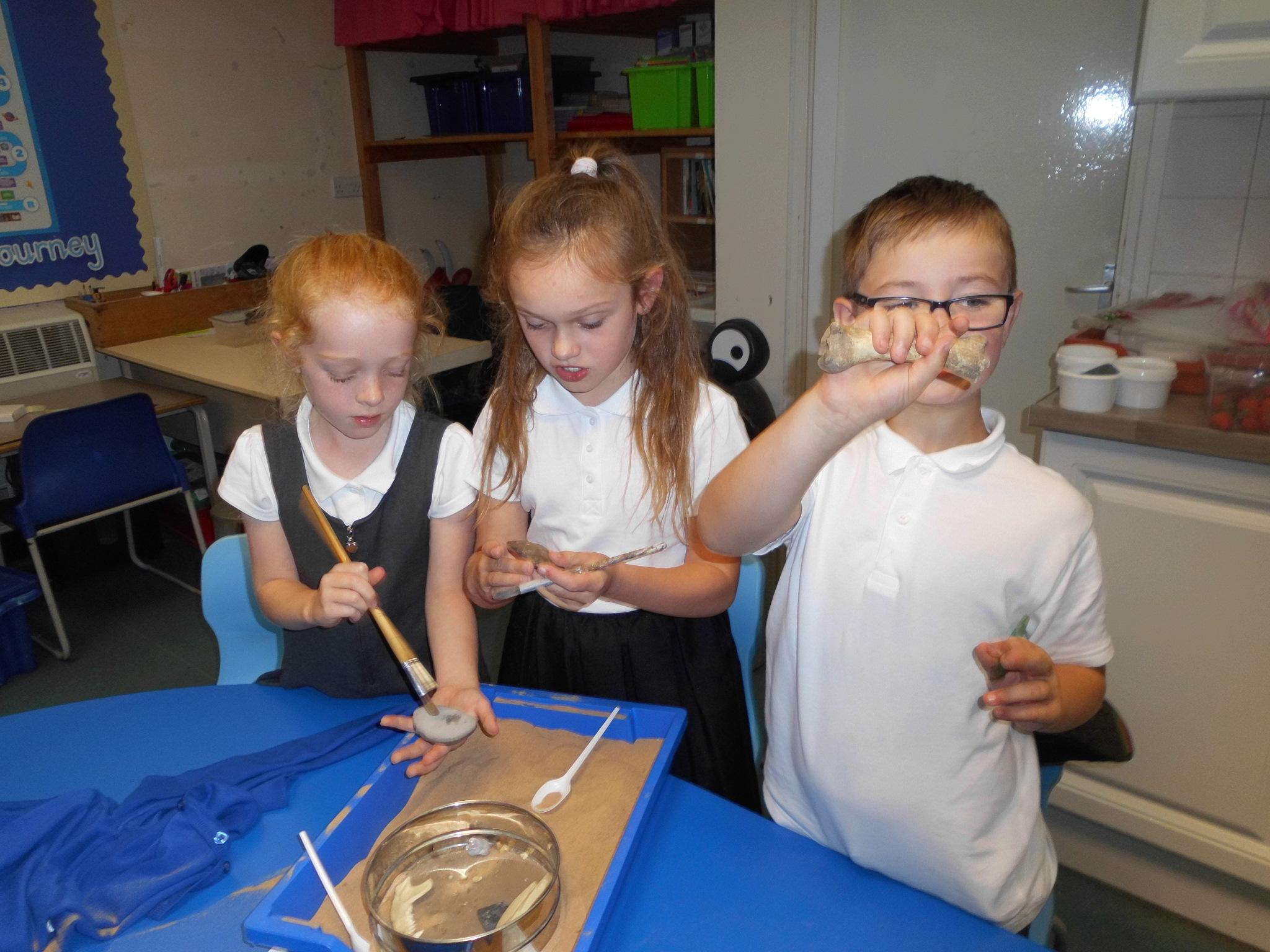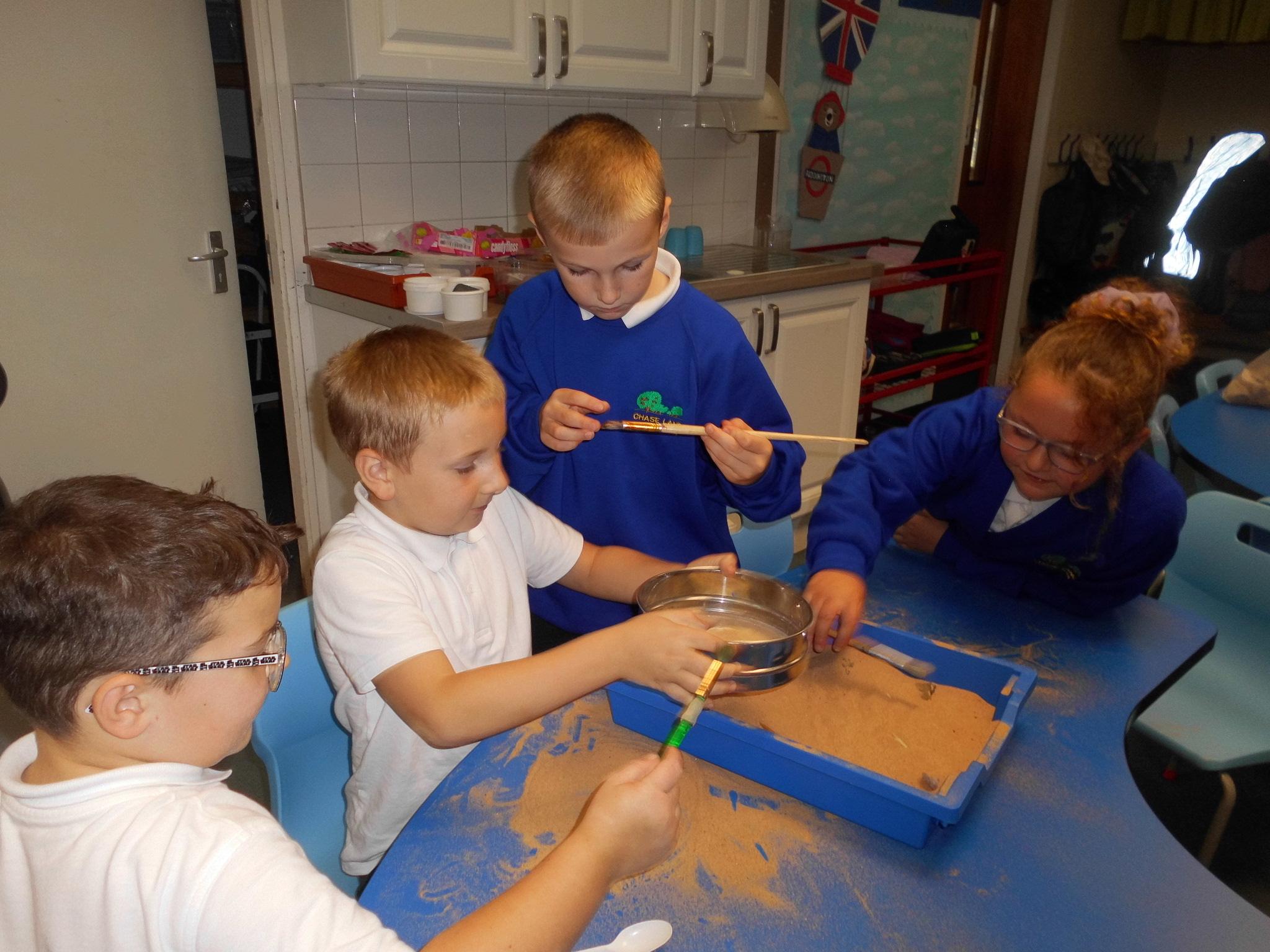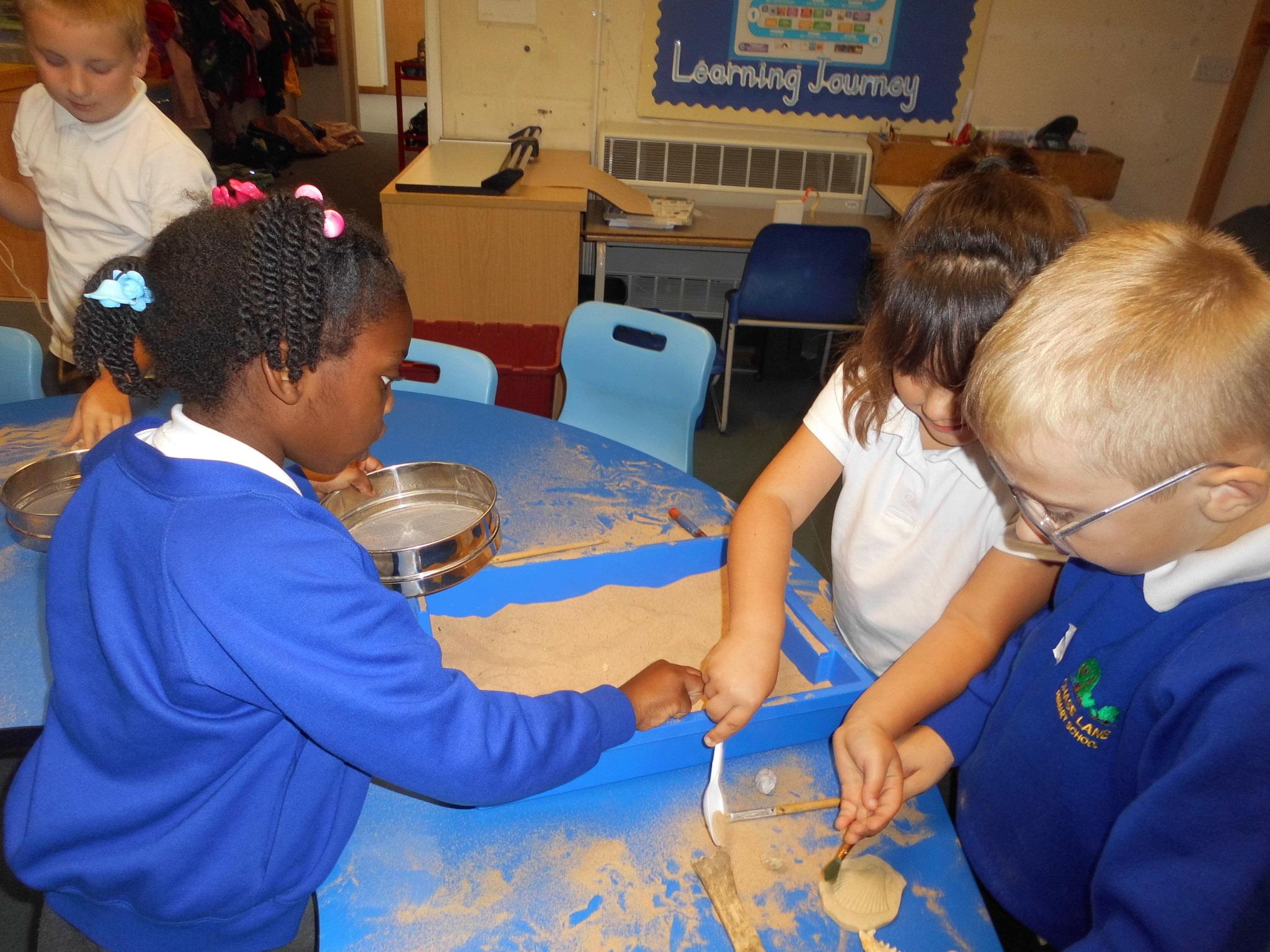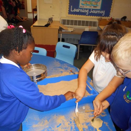 Whilst studying the Stone Age, we have learnt about how archaeologists found out about the past. We have tried to recreate some of these methods including becoming archaeologists by excavating in the sand. Here we are being archaeologists!