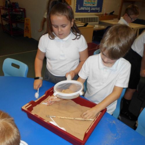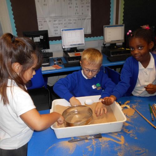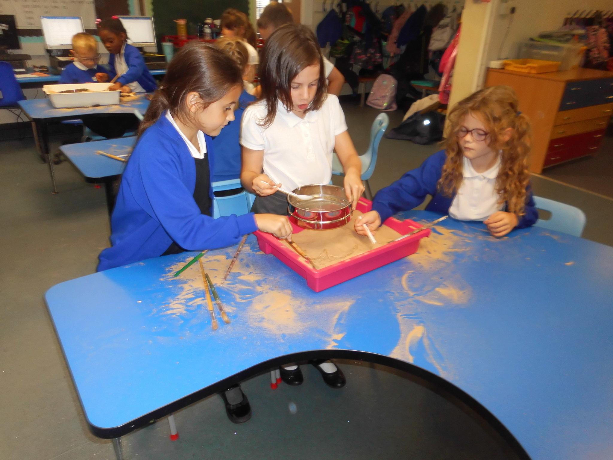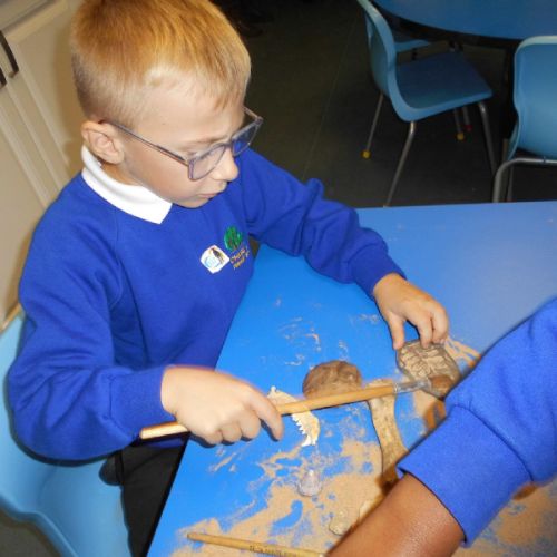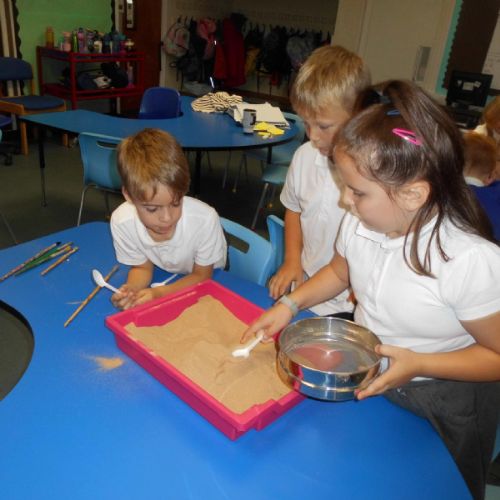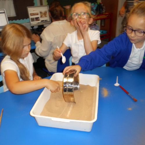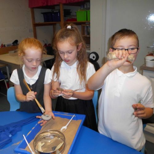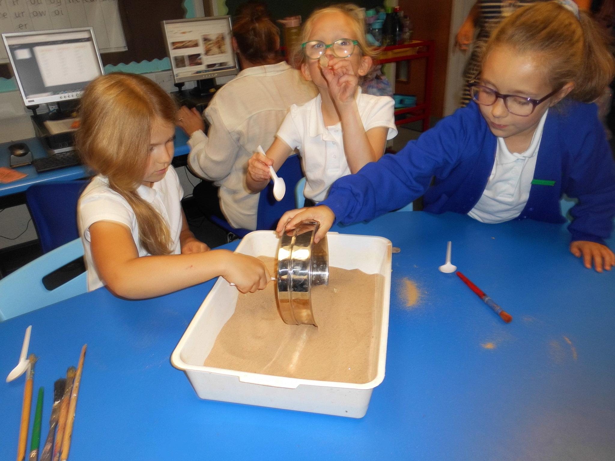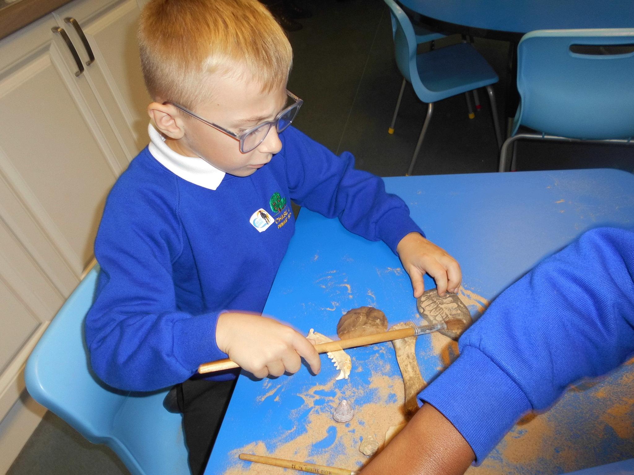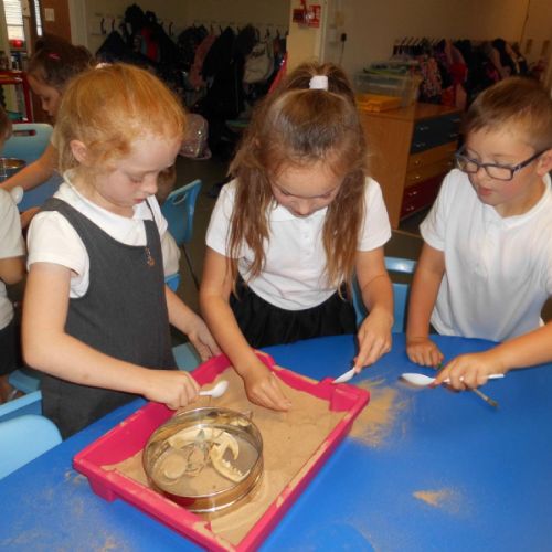 Whilst studying the Stone Age, we have learnt about how archaeologists found out about the past. We have tried to recreate some of these methods including becoming archaeologists by excavating in the sand. Here we are being archaeologists!