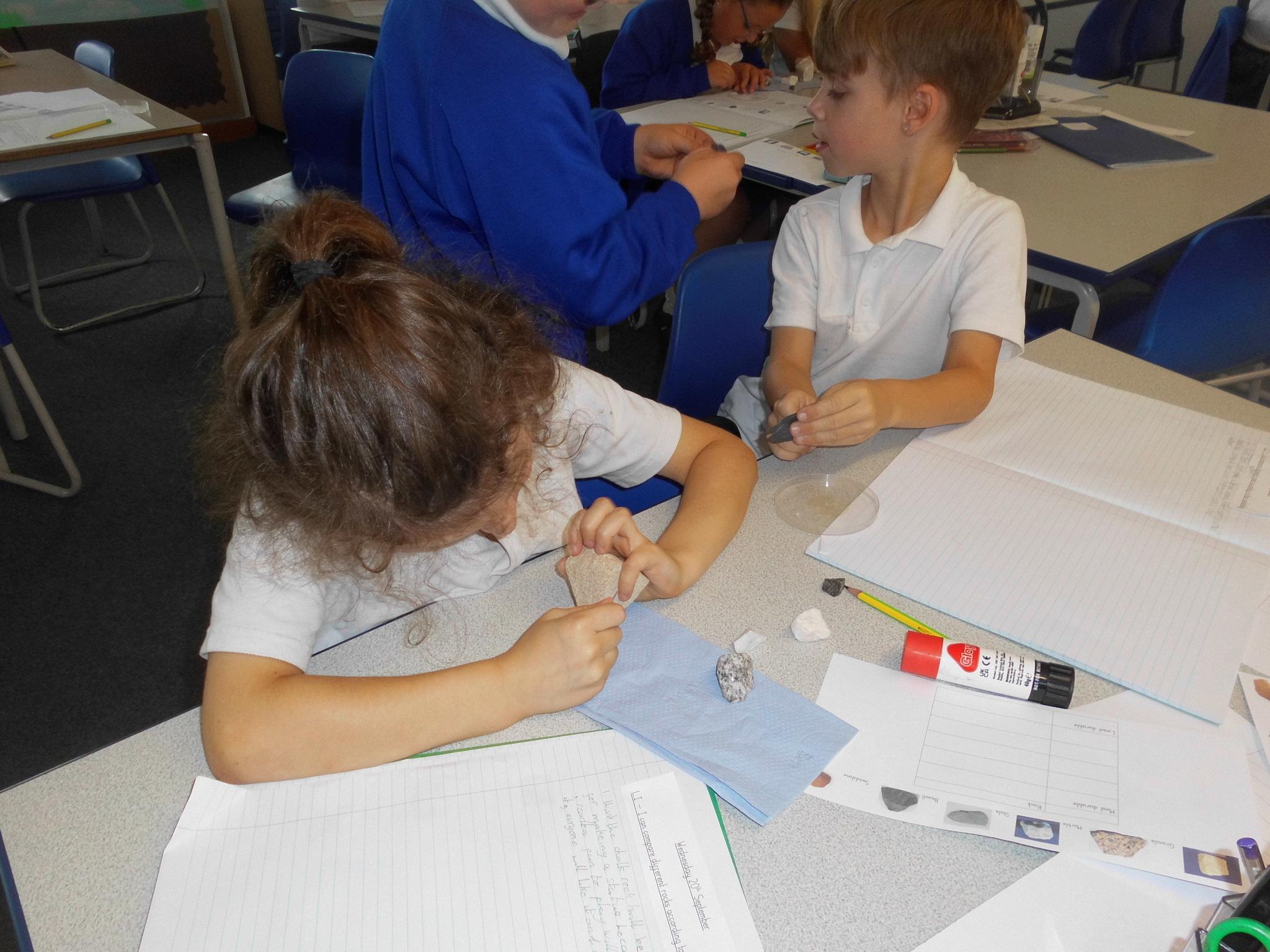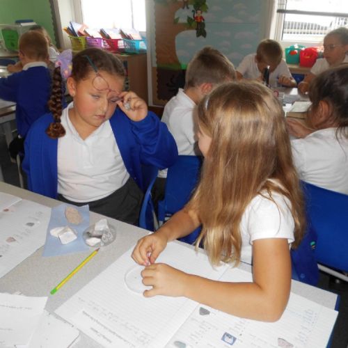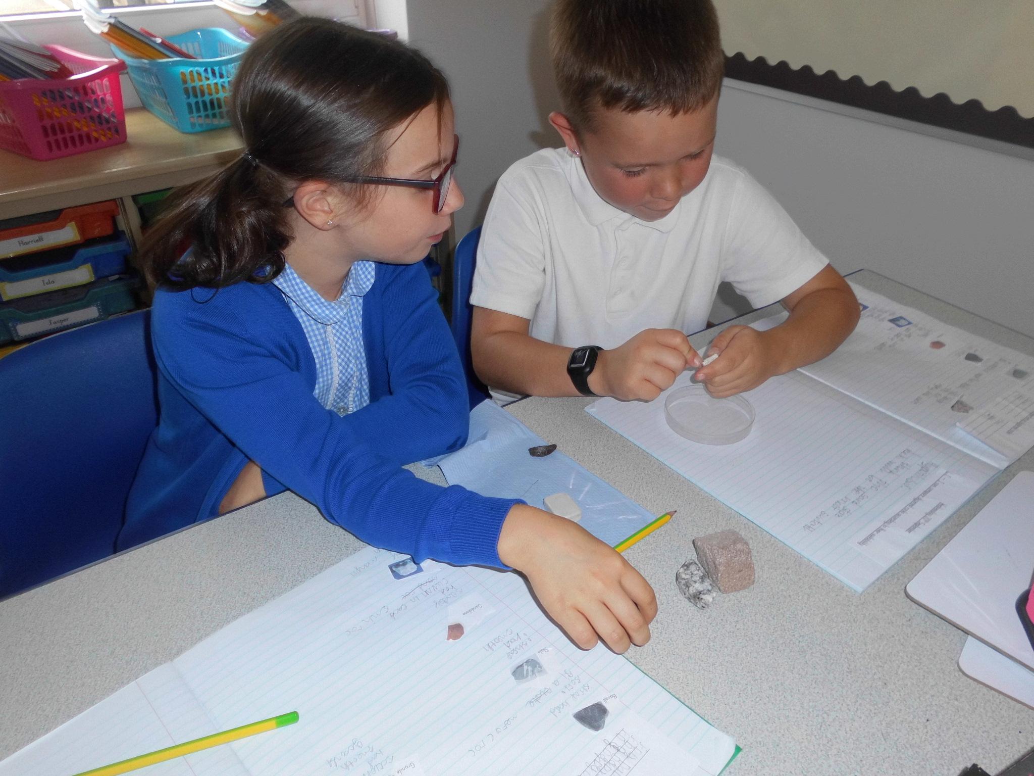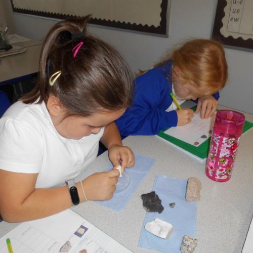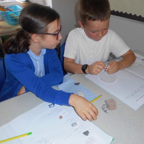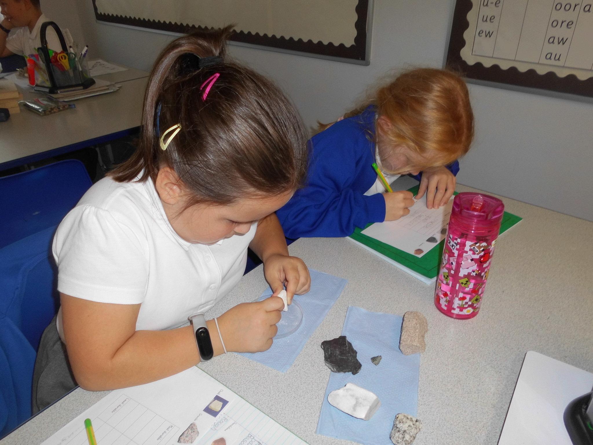 In Science, we have been learning about different types of rocks including how igneous, sedimentary and metamorphic rocks are made. We are currently trying to find our which rock will be the most suitable to make a statue of Mrs O’Mara out of. The class have been testing the different rocks to see how durable they are by scratching them. We all made a prediction based on what we already knew and we all decided that it needed to be tough, scratch-proof and nice to look at.