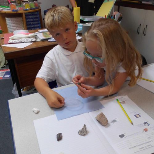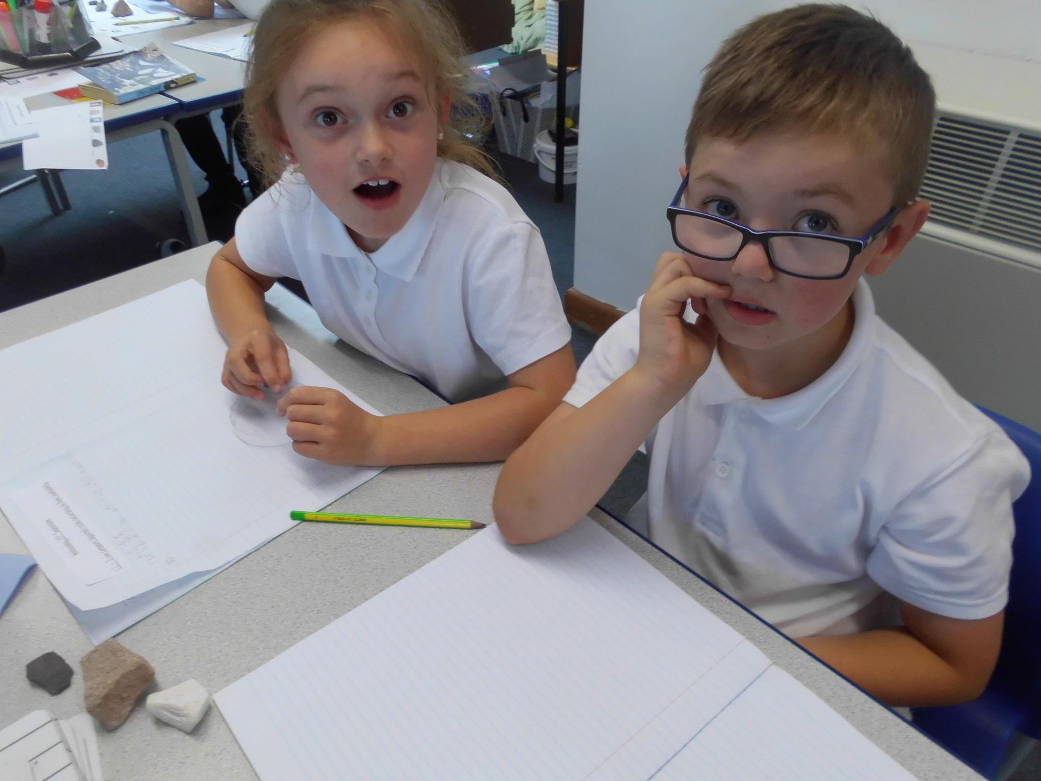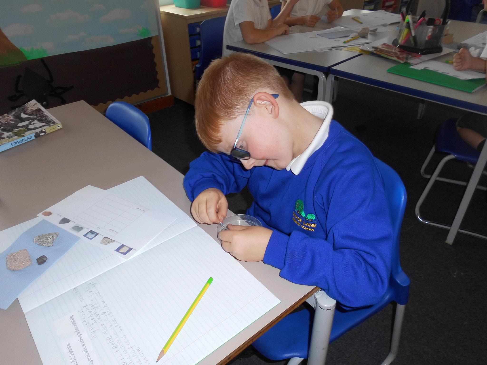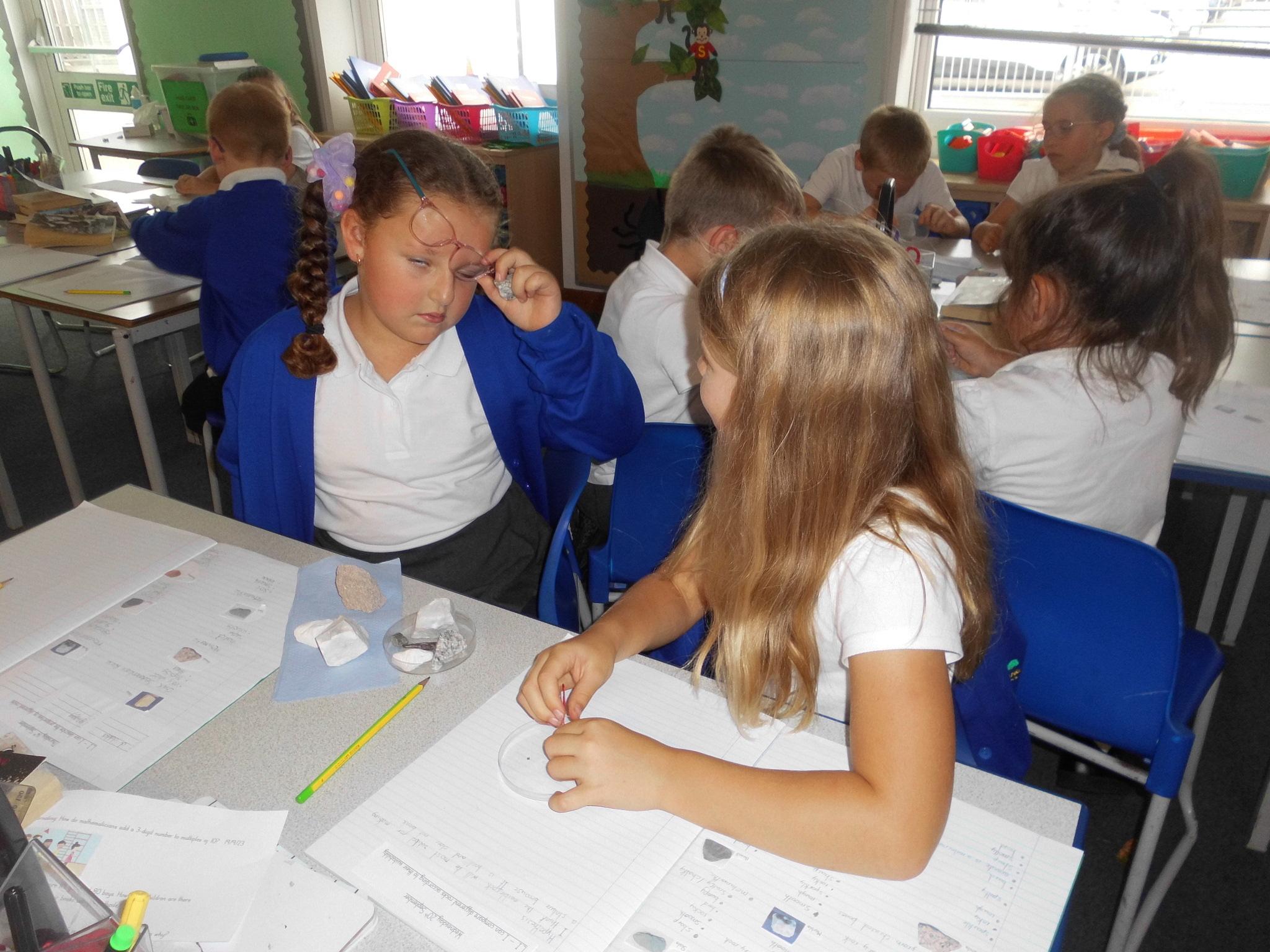 In Science, we have been learning about different types of rocks including how igneous, sedimentary and metamorphic rocks are made. We are currently trying to find our which rock will be the most suitable to make a statue of Mrs O’Mara out of. The class have been testing the different rocks to see how durable they are by scratching them. We all made a prediction based on what we already knew and we all decided that it needed to be tough, scratch-proof and nice to look at.