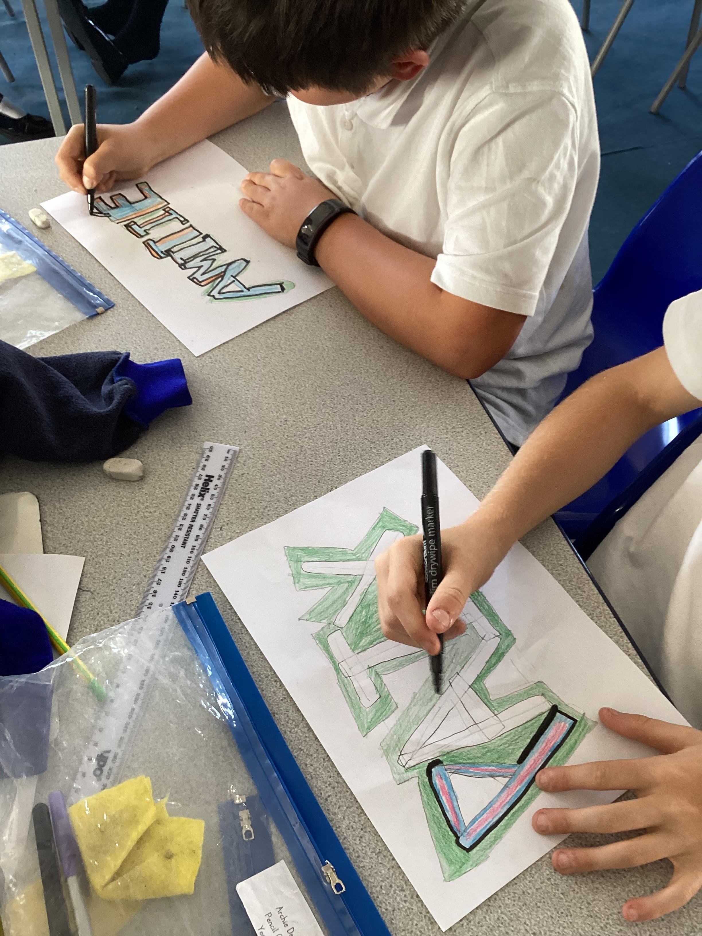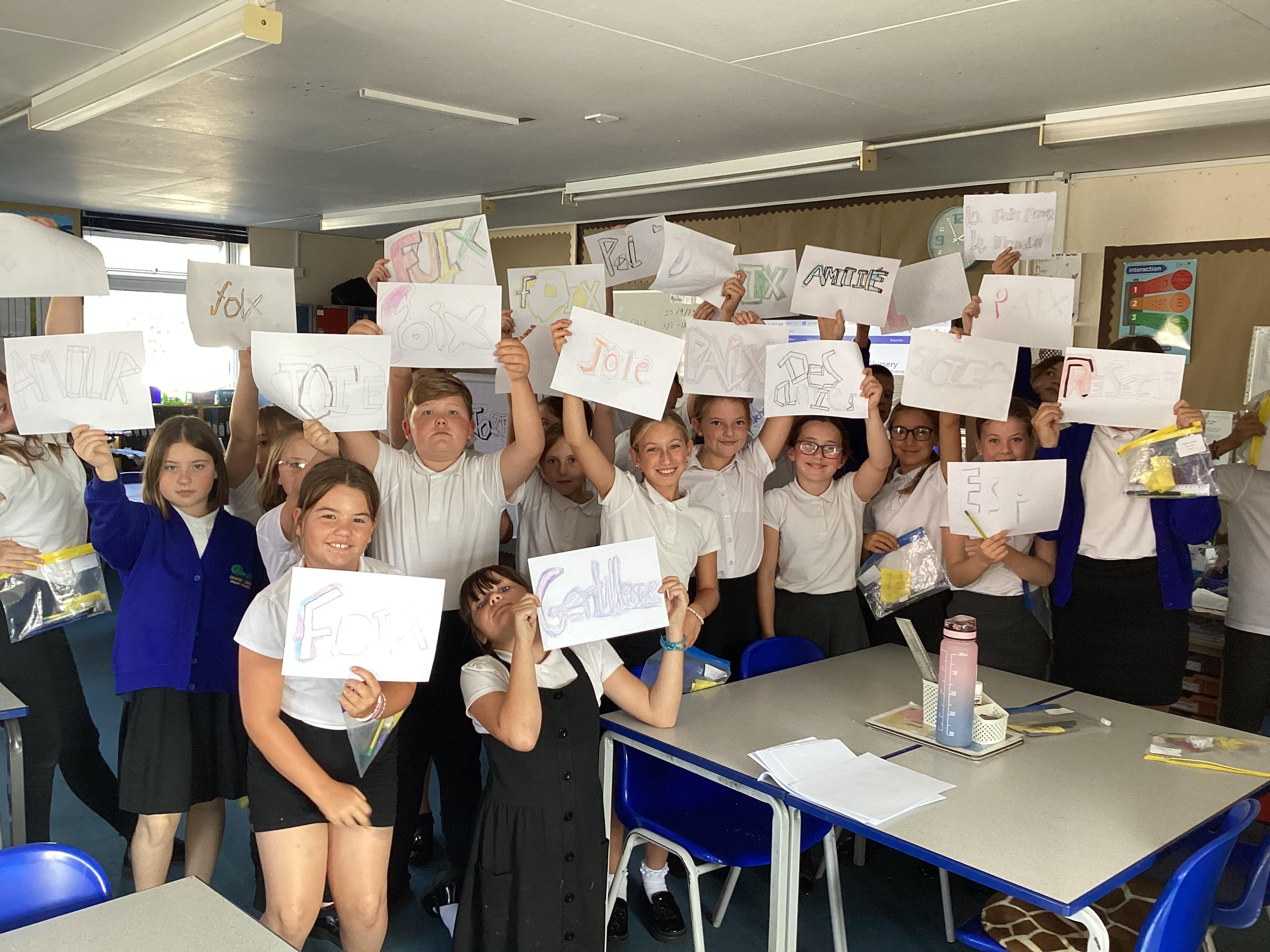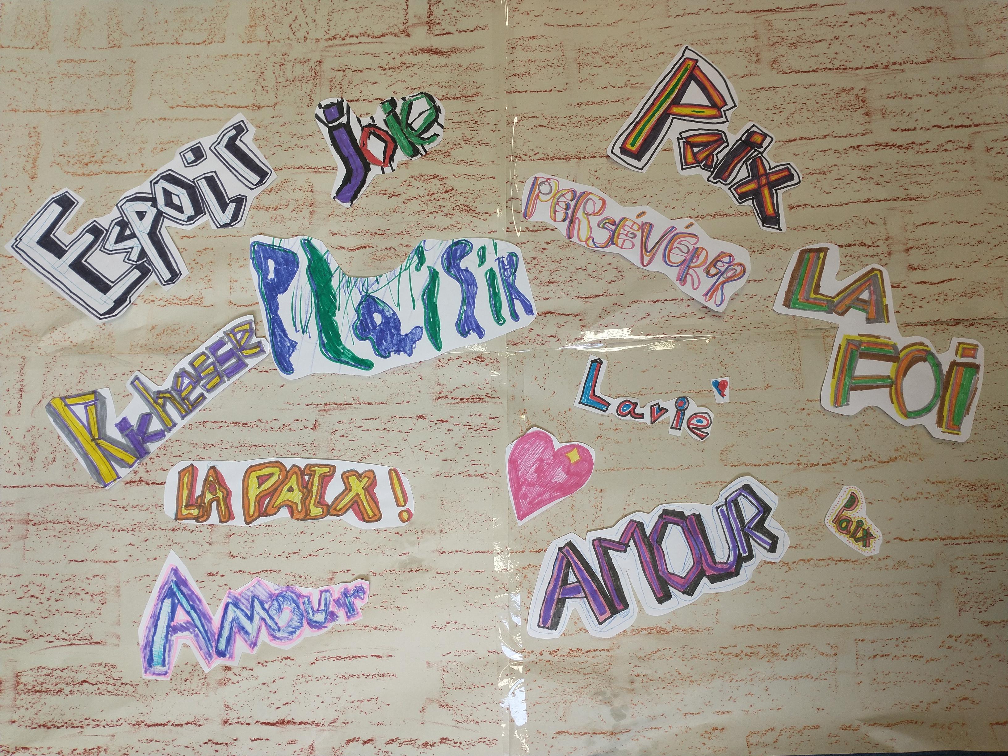 Before leaving us in Summer 2023, Year 6 enjoyed a workshop in French, listening to and watching Kids United singing 'On Écrit Sur Les Murs' (Writng on walls), exploring the history and culture of Grafitti in France and then using dictionaries and online dictionaries to find and then design in a graffiti style words which represent their aspirations for the future.
