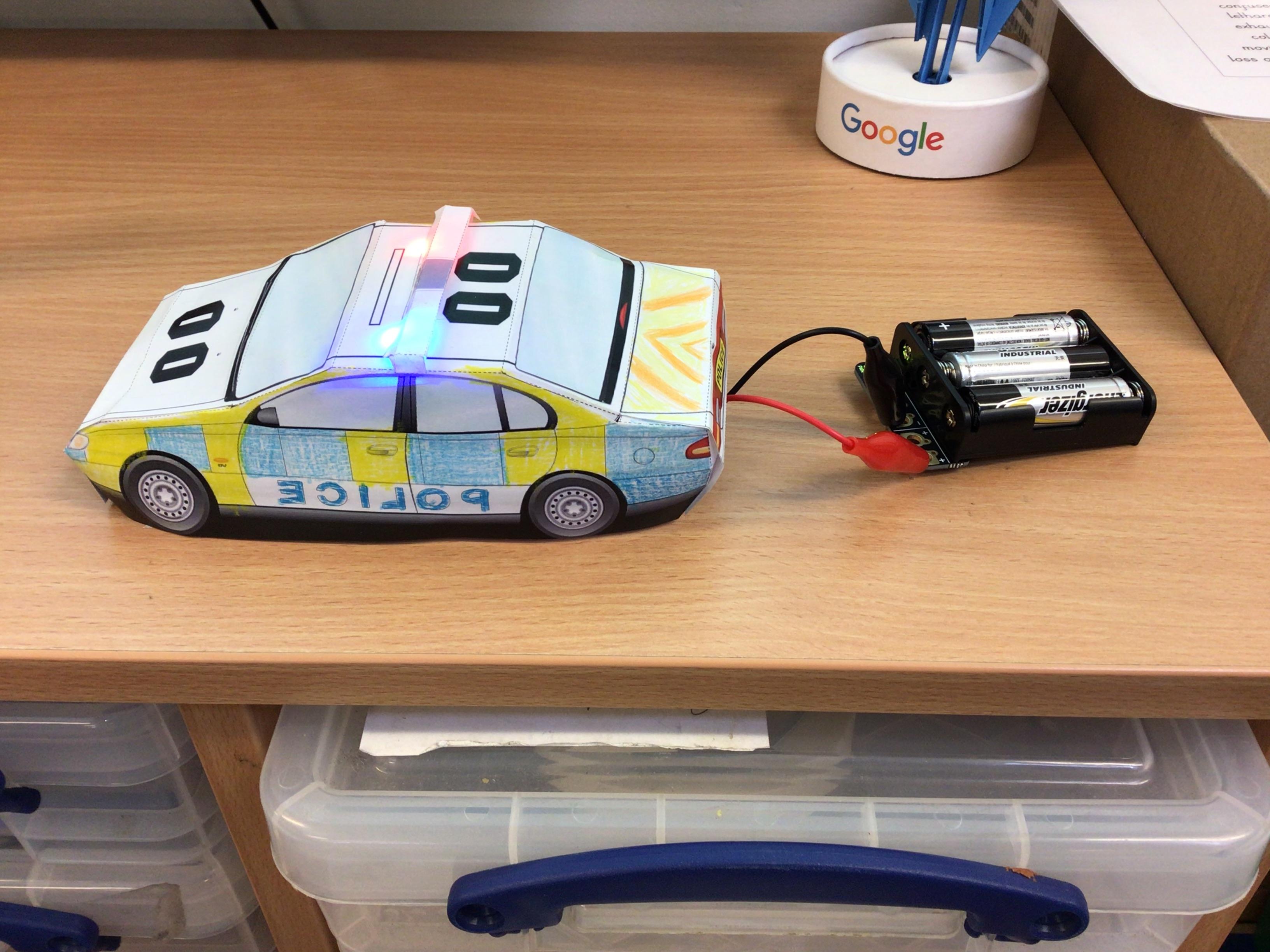Police Car Lights - Building a simple circuit and programming; use repetition to control physical outputs