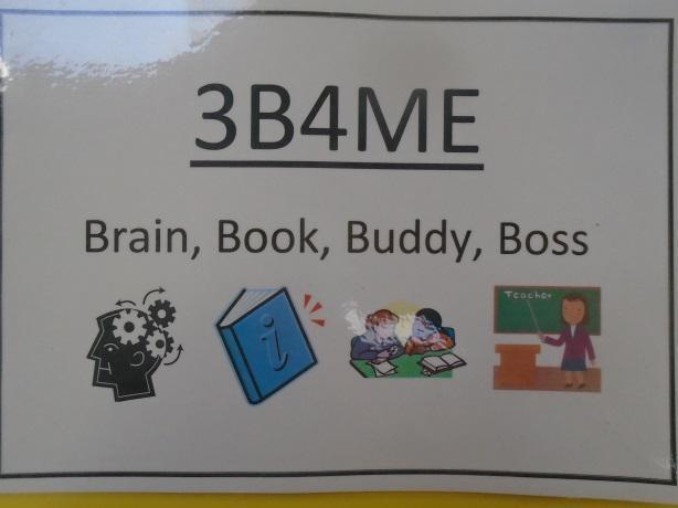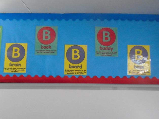 3 Before Me/the 5 B's – children are encouraged to be more independent with their learning and within the classroom. They are offered multiple ways to help them before asking the teacher for help – first use their brain, then check their book, look on the board for help, ask a buddy and finally ask the boss (the adult).
